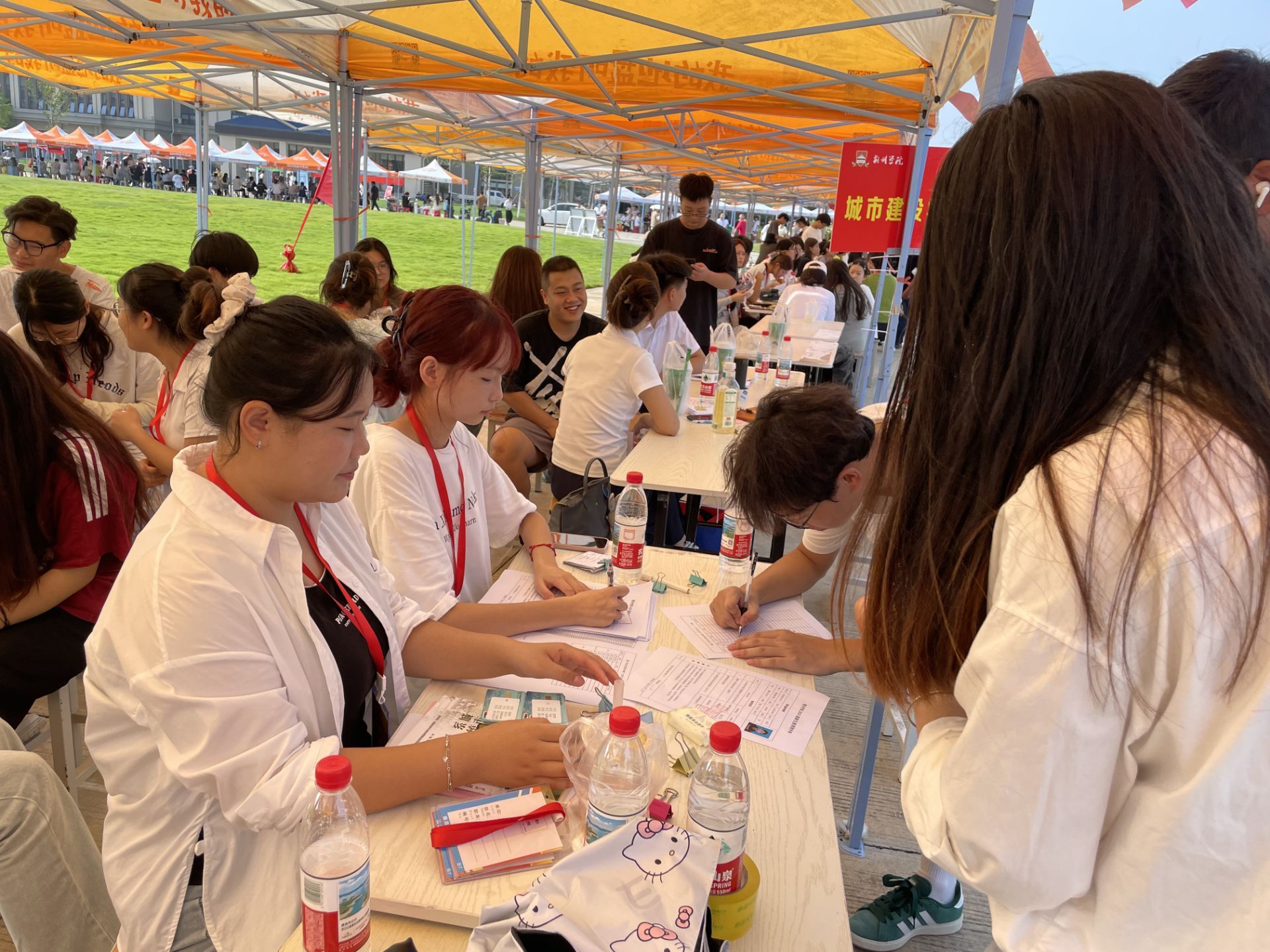 城市建设学院迎新工作队还设置了休息区,为家长和新生提供饮用水和小零食;积极联系校园大巴,方便新生及家长往返于报到点和宿舍区;开通线上迎新系统,方便新生查询自己的班级,简化报到流程,提高工作效率。