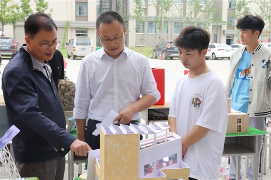 5月12日、13日,参赛作品在校园内进行展示,并设有线上线下投票机制,吸引了学校师生驻足观摩。代理校长陆博,副校长柴兴泉、付秋峰,学生工作处处长许明超,城市建设学院副院长贺才豪、党总支书记陈凯等领导也来到建模展现场,逐一欣赏学生作品,并投出了宝贵的一票。