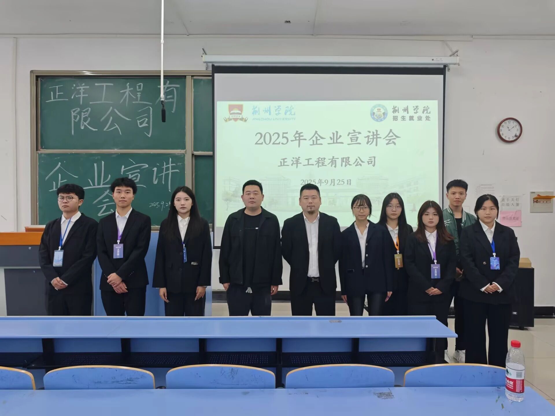 为进一步拓宽毕业生就业渠道,帮助同学们更好地了解行业发展动态,明确职业规划方向,9月25日上午10点30分,城市建设学院邀请了正洋工程管理有限公司走进校园,举办了一场别开生面的企业宣讲会。本次活动不仅让同学们深入了解了企业的发展历程与用人理念,也为即将踏入社会的毕业生提供了就业机会。