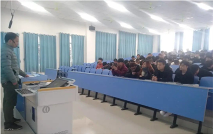 贺才豪老师在正式开讲前告诉同学们学校开展第八届大学生创新创业大赛的相关通知,然后给大家列举的许多在校大学生创业后取得的成果,鼓舞打架勇于尝试,积极加入创新创业的队伍。紧接着老师讲到参赛的创业作品的相关信息,对于创新创业项目申报的实施原则和程序、项目的主要来源申请项目的经费资助、申报的评审时间安排以及创业的相关政策等在此给大家做了详细的讲解。