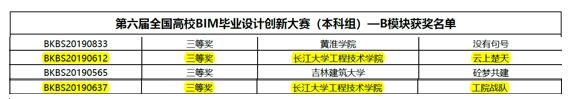 本网讯 (通讯员 贺才豪)近日,在第六届全国高校BIM毕业设计创新大赛中,我院城市建设学院两个参赛队“云上楚天”和“工院战队”喜获两个“三等奖”。