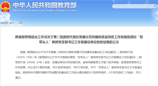 本网讯(记者 黄思琦)近日,教育部办公厅公布了第二批全国党建工作示范高校、标杆院系、样板支部和首批高校“双带头人”教师党支部书记工作室建设单位通过验收的通知。经建设单位对标自查总结、省级党委教育工作部门把关审核、教育部思想政治工作司审查验收结果,我校城市建设学院教工党支部顺利通过“全国党建工作样板支部”培育创建单位验收。