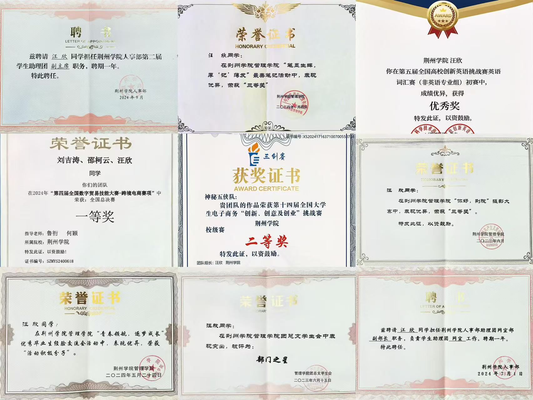 于学海中沉潜,在实践里磨砺。在追求个人全面发展的道路上,我也从未停歇。我积极参加各类学科竞赛和社会实践活动,不断拓宽自己的视野和知识面。在全国数字贸易技能大赛跨境电商赛项中,我与团队成员并肩作战,经过数天的努力钻研和反复实践,最终取得了优异的成绩,为学校和班级争得了荣誉。在社会实践方面,我积极参与各项实践活动,深入社区,为需要帮助的人们提供志愿服务,现已有累计志愿时长175小时。通过与不同人群的交流互动,增强了我的社会责任感和使命感。