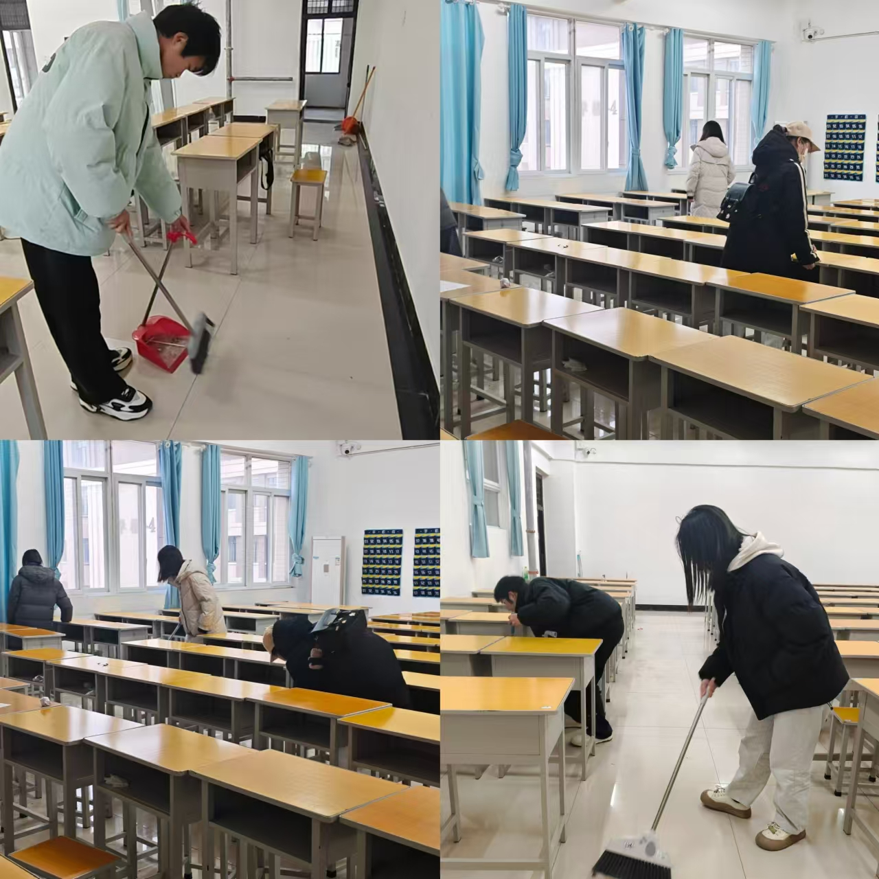 在洁校活动中,同学们热情饱满地在六栋教学楼下以班级为单位,集合迅速,分工明确,大家手持扫帚、垃圾钳、抹布等工具,分工明确,不放过任何一个垃圾纸屑,只为给大家营造一个干净整洁的学习环境。