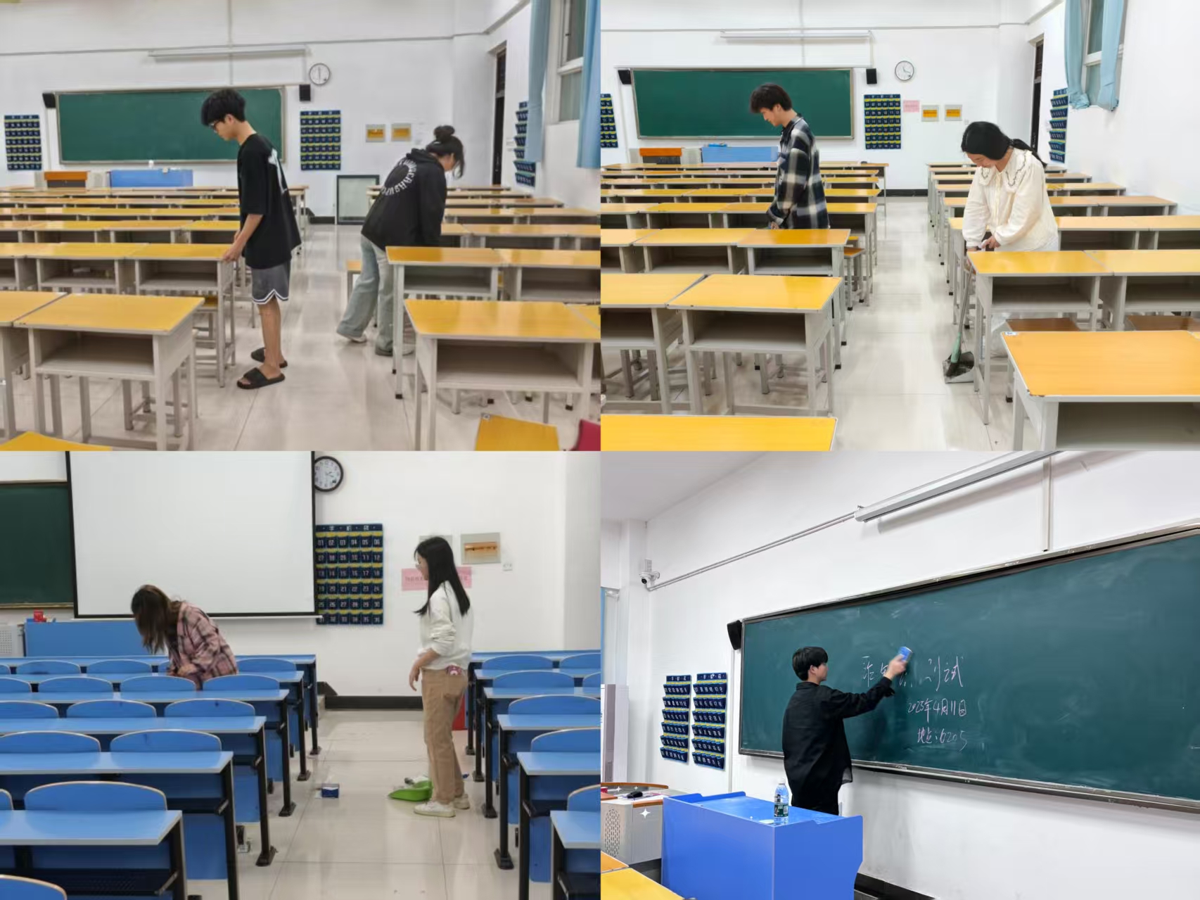 在教室里,大家认真摆放桌椅、清扫地面,仔细检查并清理杂物。每个人都在自己的岗位上默默奉献,用实际行动诠释着劳动之美,共同为营造一个更加舒适、整洁的学习环境而努力。