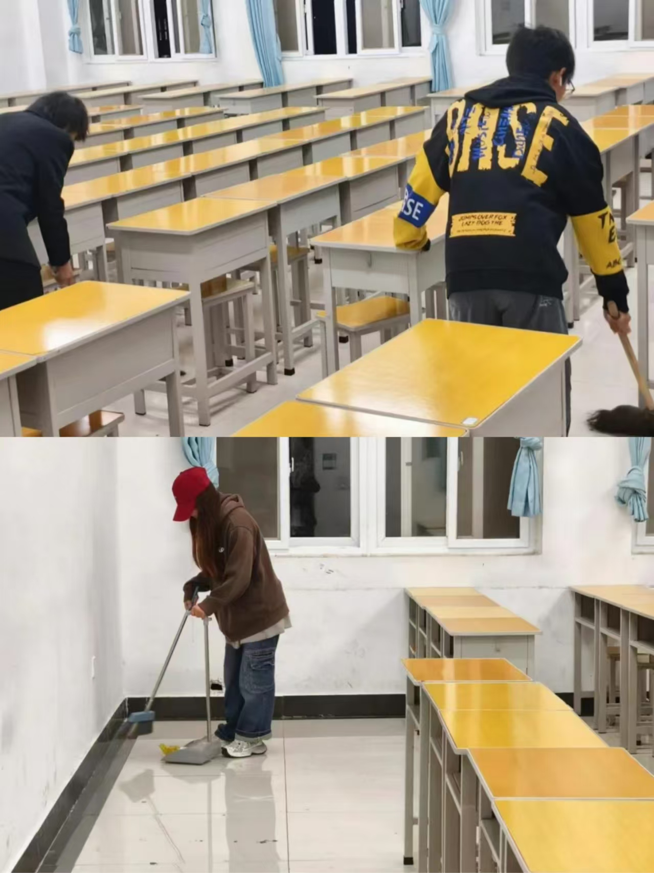 活动伊始,众人满怀热忱,准时集合于六栋教学楼前。在相关活动负责人的带领下,学生们以班级为单位,迅速集合,分工明确,有条不紊地进行着各项清洁工作。大家都按照活动安排积极地对每一个地方进行清扫,同学们各尽其责,井然有序。教室里,同学们都在认真完成自己的工作,扫地、拖地、倒垃圾等,为师生们提供干净整洁的工作和学习环境。在大家的共同努力下,显著提升了六栋教学楼的环境质量。