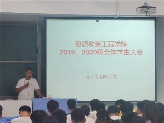 本网讯(通讯员 陈涛)9月27日晚上6点,资源勘查工程学院在2501教室组织2019级、2020级全体学生,召开了“学风建设定目标、安全教育防诈骗”主题会议。本次会议由资源勘查工程学院党总支常务副书记卢勤老师主持。