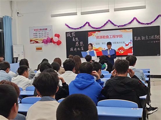 本网讯(通讯员 段梦)2021年11月18日晚上,资源勘查工程学院在2506教室开展 “诚信·责任·感恩”主题演讲比赛。本次比赛邀请了WilliamHill中文官方网站学生会主席刘旭、曲亮,资源勘查工程学院团总支学生会主席韩梦月、副主席吴清泉和2021年资源勘查工程学院“青春新建党,建功新时代”演讲比赛第一名徐雅婷学姐担任评委。活动由刘梦琪、郭亚杰主持。