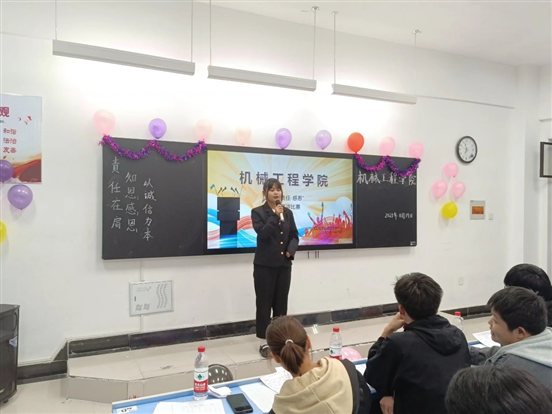 本网讯(通讯员 张国富)为践行社会主义核心价值观,推动我院精神文明建设,丰富大学生的美好生活,2021年11月19日18:00,机械工程学院在教学楼2406 举办“诚信·责任·感恩”主题演讲比赛。比赛邀请了校团委学生会主席刘旭, 2019年演讲比赛冠军李好,2020年冠亚军秦滔、邓备,团总支学生会副书记助理伍俊雯,副主席李浩出席活动并担任评委。