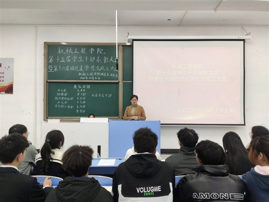 本网讯(通讯员 陈星宇 张国富)白驹过隙,转眼又是一年。为贯彻落实自强不息、追求卓越的新时代青年精神,不断提升学生会干部的责任感和服务意识,2021年11月10日18:30,机械工程学院于教学楼2401召开第十五届学生干部表彰大会暨第十六届团总支学生会成立大会。机械工程学院党总支书记王艳老师,团总支书记苏杭老师,辅导员郭辉、刘亮、阮晓兵、王琼老师,第十五届优秀学生干部、第十六届团总支学生会全体成员参加会议。
