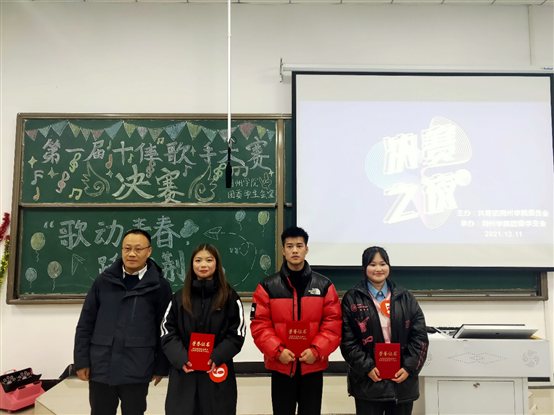 比赛穿插着两轮的观众听歌识曲赢奖励游戏,减少了比赛的紧张氛围,观众席也是笑声连连。经过了两个多小时的的激烈竞争,最终后综合组合表演得分与个人展示得分,信息工程学院电信专62101陈仔毅以综合成绩9.46分获得冠军。外国语学院英语专62101谭珺月、信息工程学院计应付紫晴分获亚军和季军。其他选手荣获WilliamHill中文官方网站十佳歌手称号。大赛最后,副校长付秋峰为本次大赛冠亚季军三名同学颁奖,党委办公室主任邹发伟老师为获得“十佳歌手”称号的七位选手颁奖。