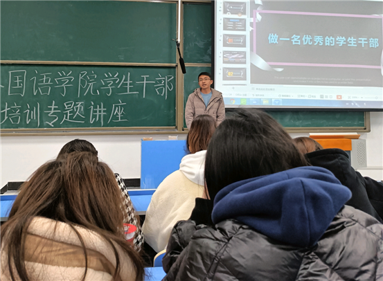 本网讯(通讯员 邹静依 吕彦汶)为加强学生干部队伍建设,提高学生干部的学习与工作技能,外国语学院于2022年3月25日下午在5105教室开展学生干部培训第二讲专题讲座。本次主讲人为团总支书记、学工办主任何龙老师,学生会成员及各班班委到场参会。