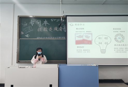 最后,贺才豪老师对三位同学热情的分享表示感谢并对本次交流会做出总结。他表示:“人生一定要有追求。同学一方面要树立坚定的理想信念,不要轻易就放弃;另一方面要增强彼此的信心,对于这种现在竞争逐渐增强的情况,大家不要害怕,我们一定要去勇敢追求,可以给彼此树立一下信心。最重要的就是,参加专升本考试的目的不是为了金钱不是为了名誉不是为了什么喜爱的物质,而是都为了自我价值实现的需要,为了实现自我价值,我相信同学们只要坚持了努力了就一定会有所收获的。”