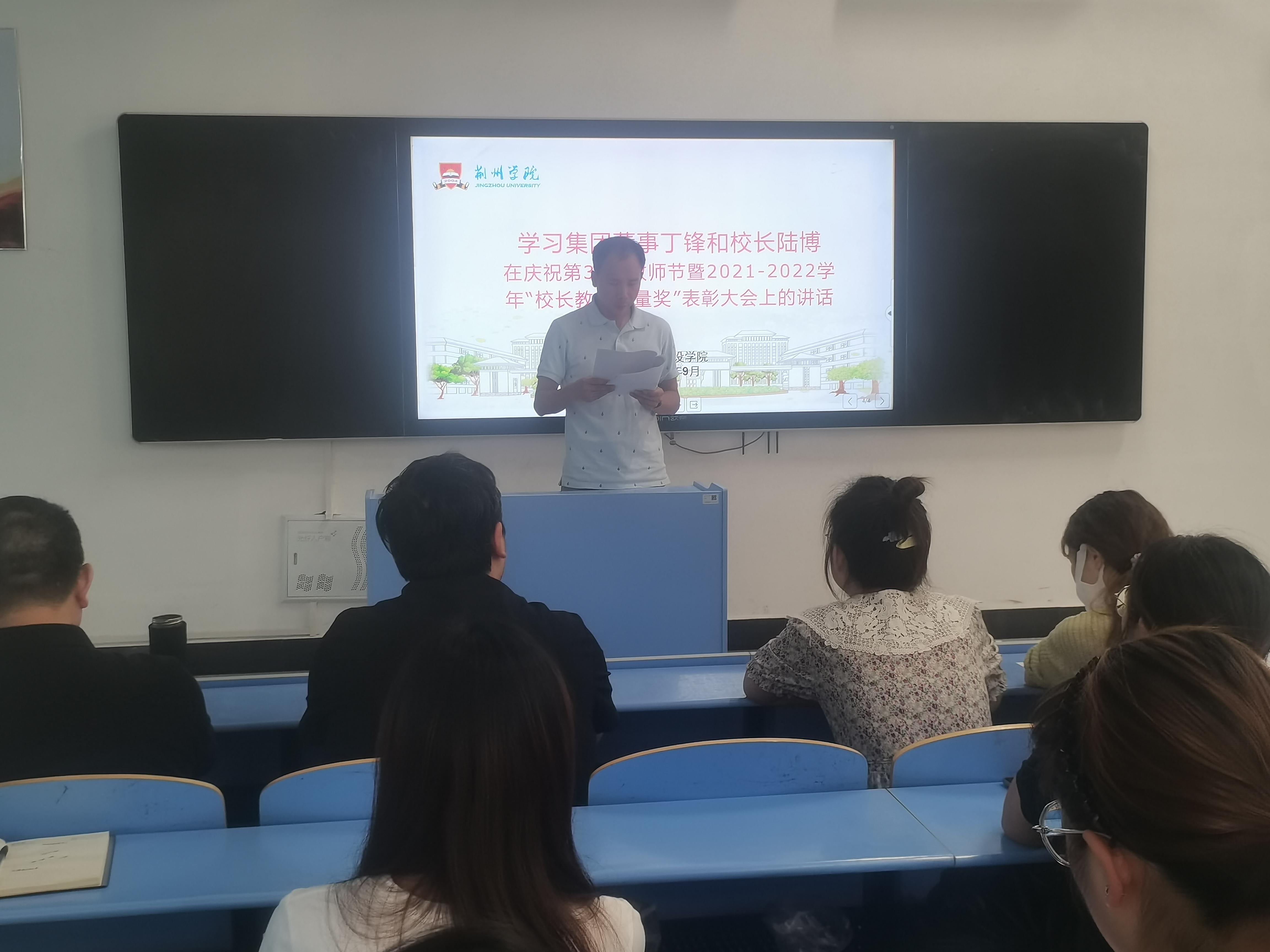 本网讯 为深入学习贯彻落实春来教育集团董事、湖北春来教育科技有限公司总经理丁锋,代理校长陆博在WilliamHill中文官方网站庆祝第38个教师节暨2021-2022学年“校长教学质量奖”表彰大会上的讲话,城市建设学院在2022年9月16日召开全体学习会议,认真学习两位领导讲话的内容及精神。