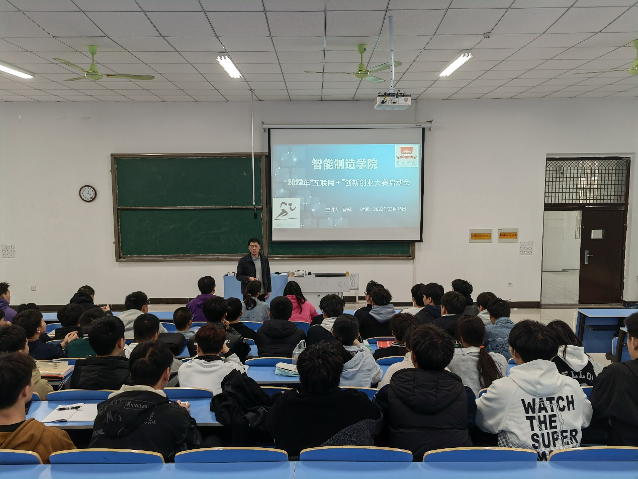 本网讯(通讯员 阮胜乾)大众创业,万众创新。为进一步激发同学们参加“互联网+”全国大学生创新创业大赛的激情,3月16日中午12点20分,智能制造学院于3205召开了2023年“互联网+”创新创业大赛启动会,该院2021、2022级各班班长、团支书、学习委员参加了此次启动会。本次启动会由辅导员郭辉老师主讲。