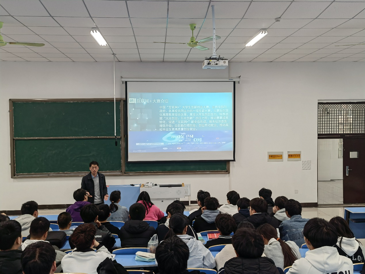 会上,郭辉老师对“互联网+”比赛的赛道分布及规则进行了详细讲解,对我校近三年创新创业大赛获奖情况进行了分享,并向到场同学们传达了我校2023年创新创业大赛的通知,希望各班班委在班级做好传达,积极宣传,鼓励感兴趣的同学拓宽思维、努力探索,积极组队参加比赛。