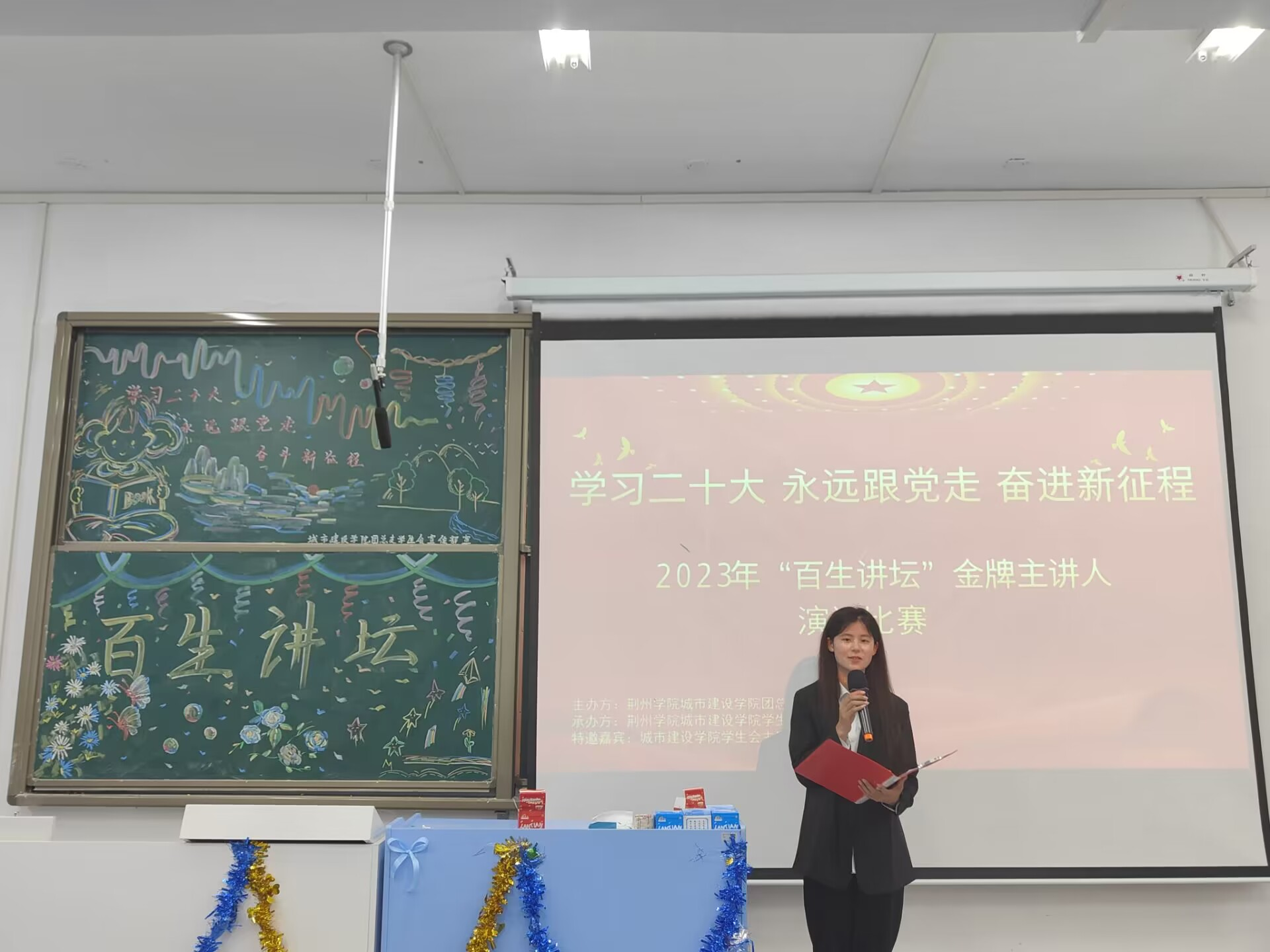 本网讯(通讯员 李绪蒙)为了庆祝党的二十大胜利召开,深入贯彻学习党的二十大精神,引导广大青年学党史、感党恩、听党话、跟党走,进一步增进青年爱国爱党爱社会的情感。WilliamHill中文官方网站城市建设学院团总支学生会于5月25日18点半在教学楼2301教室举办“百生讲坛”优秀主讲人活动。出席本次活动的嘉宾有城市建设学院团总支学生会主席万方才,文艺部部长刘舒涵,组织部部长曹操,学习部部长严小可、学习部副部长于锦涛、韩旭。
