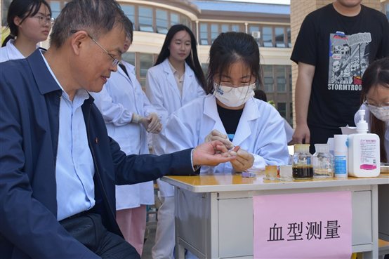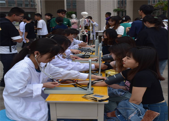 活动现场气氛热烈,吸引了众多师生及工作人员的兴趣,纷纷前往观摩并参与体验。大家有序观看手绘作品、听取模型讲解、并体验血压检测与血型测量。测量组的同学们沉着冷静、动作娴熟,把稳、准、快的准则表现得淋漓尽致,展示组的同学们对每个身体器官模型讲解专业、生动形象又不失风趣幽默,有效帮助大家了解了人体器官的构造、功能及健康生活的小常识。