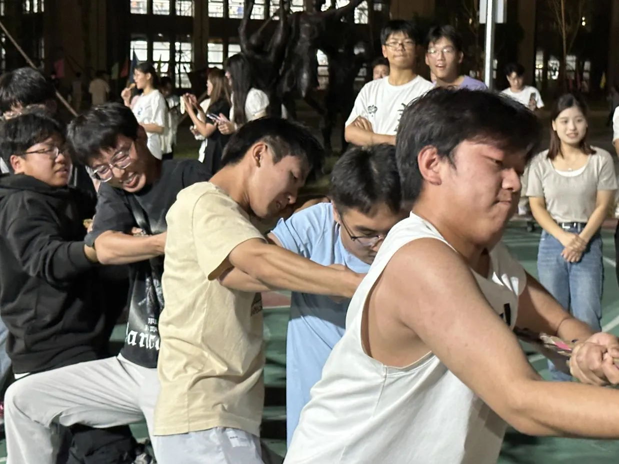 本网讯 秋高气爽,桂子飘香,为丰富大一学生的精神文化生活、促进班级与班级之间的交流、发扬班级团队精神和增强班级凝聚力,10月18日晚,管理学院在篮球场上举办了第四届"青春无悔,激情无限"拔河比赛复赛。