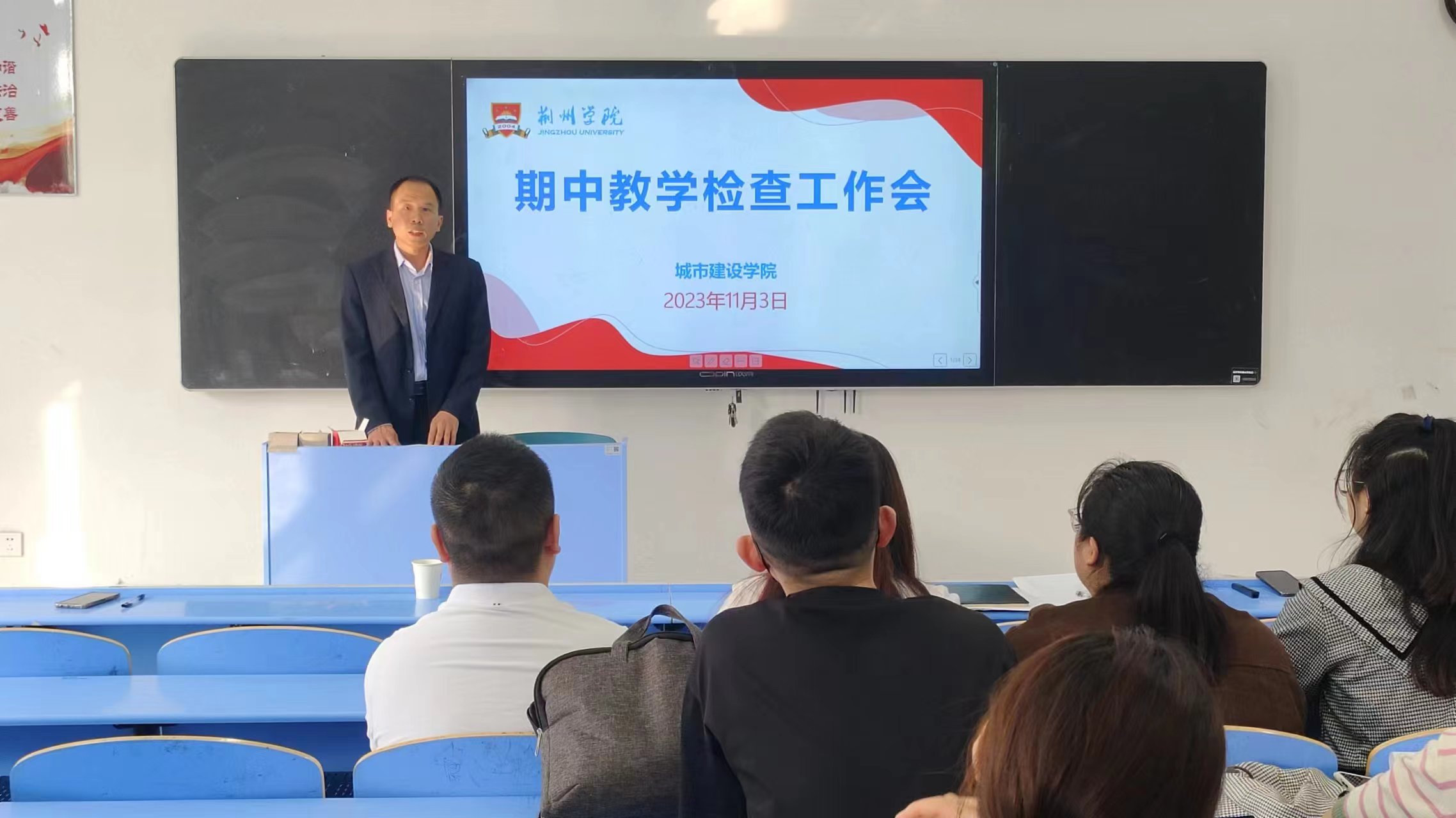 本网讯(通讯员 吴俊辉)教学检查是学校日常教学质量保障的重要环节,旨在全面评估学校教学水平和教师教学质量,并通过有效的评估和反馈,进一步提升学校的教育教学质量。城市建设学院于2023年11月3日上午10点在教学楼2304教室召开期中教学检查工作会议,出席本次会议的有城市建设学院党总支书记陈凯老师、副院长贺才豪老师、教学办公室秘书、团总支书记叶小华老师、全体辅导员及各科任老师。本次会议由贺才豪老师主持。