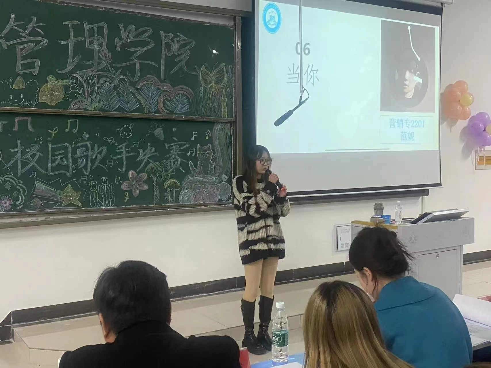 本网讯 为丰富校园文化生活,营造至善至美的校园文化氛围,激发同学们热爱艺术、展露才华的积极与热情,管理学院于2023年11月17日18:20在3205教室举办“我声言我心,管院好声音”决赛 。此次决赛特邀嘉宾有管理学院团总支书记季诚以及辅导员关婧瑶老师,评委由校学生会主席、艺术团主席、艺术团声乐团团长、新月吉他社社长等11位人员担任。