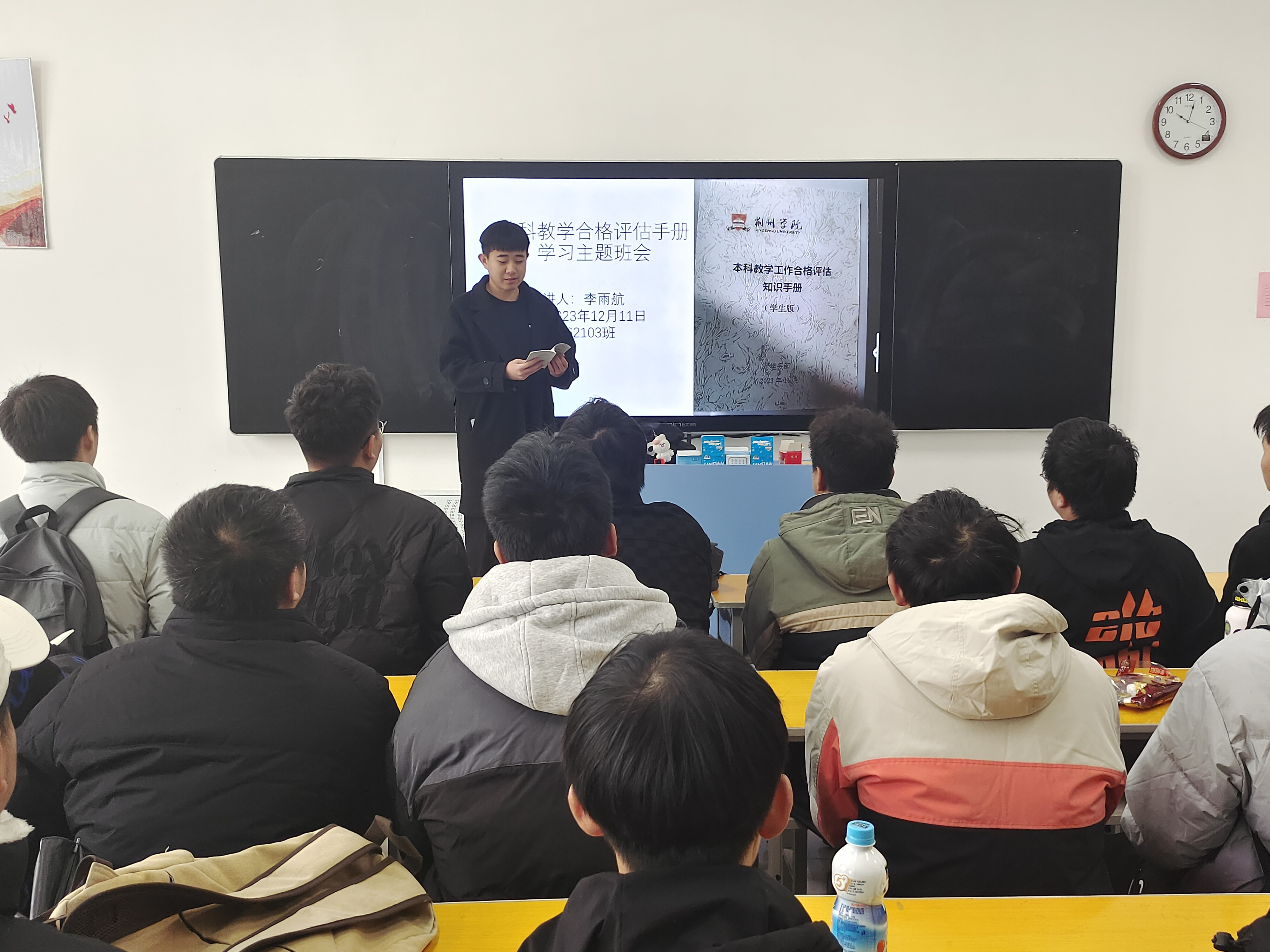 各班级召开班会学习本科教学工作合格评估知识手册