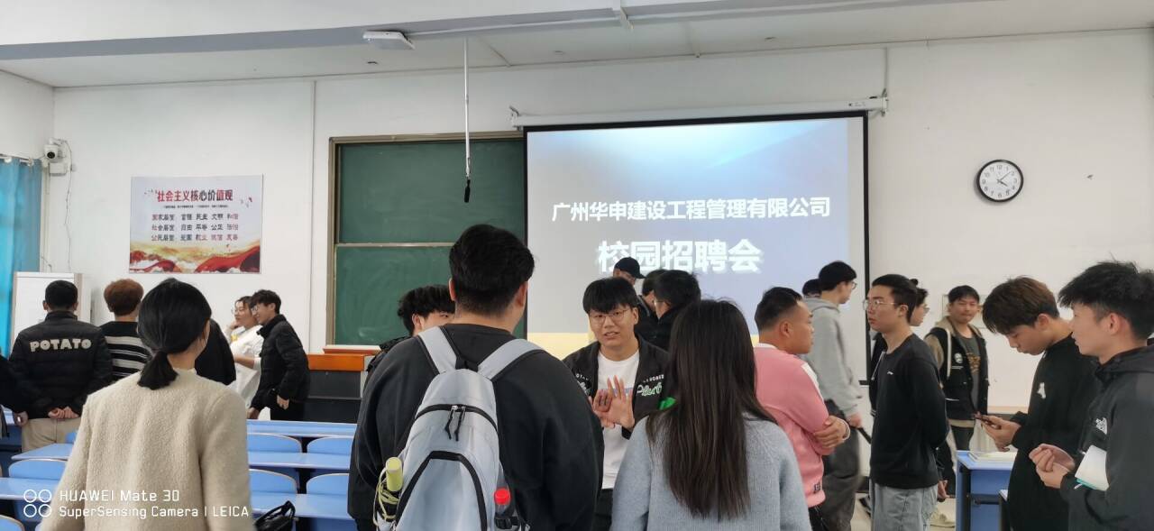 19日上午,广州华申建设工程管理有限公司来我院进行专场招聘活动,招聘会现场人潮涌动,公司总经理黄清具体讲解了公司发展历程、招聘岗位、公司项目成就等。会后,黄清对有意向的学生当场面试,个人原因未能现场参加招聘会的学生也进行了线上面试,初步达成就业意向学生共11人。