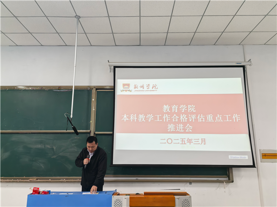 本网讯 为全力推进本科教学工作合格评估进程,3月26日下午,教育学院在5105教室组织召开全体教职工本科教学工作合格评估重点工作推进会。学校副校长刘瑾莅临指导。