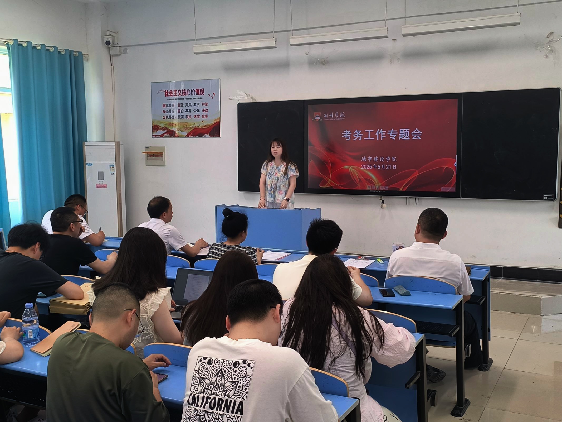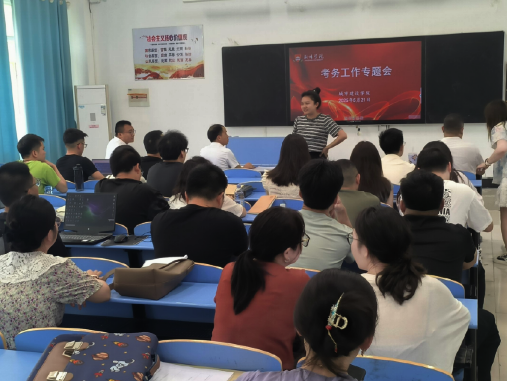 本网讯(通讯员 周瑾)为全面部署本学期期末考试工作,严肃考风考纪,确保考试公平有序进行。根据学校教务处整体工作安排,城市建设学院于5月21日在1304教室召开了2024-2025学年第二学期期末考试考务工作会议。会议由院长贺才豪主持,全体教职工参会,教务处李紫微老师受邀参加。