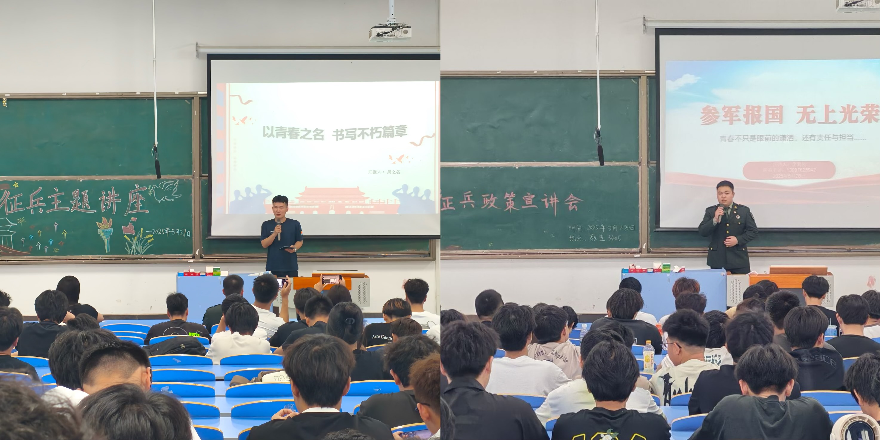 本网讯 为激发毕业生参军报国热情,扎实推进学院征兵工作,智能制造学院于5月27日、28日举办两场“青春向军营·奋斗正当时”毕业季征兵政策宣讲会。宣讲会由辅导员柯婷、晏学渊作主持并解读政策,特邀两名优秀退伍大学生士兵分享军旅经历,为毕业生提供精准政策指引和榜样力量。
