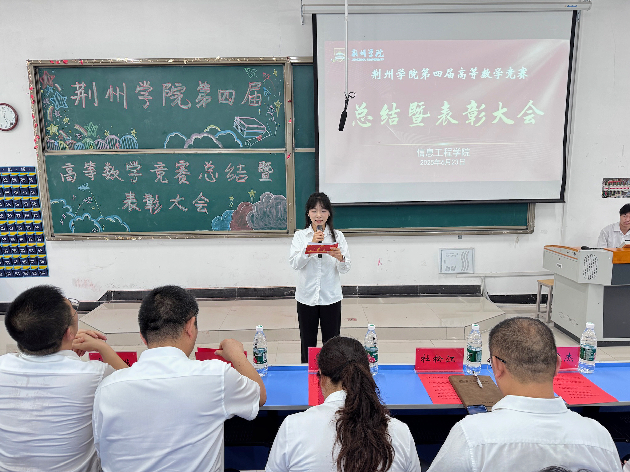 本网讯(通讯员 秦昕)为激发大学生竞赛激情、创新思维,形成以赛促学、相互赶超的学习竞争氛围,同时鼓励学生积极参与高水平学科竞赛、表彰优秀个人、推广竞赛经验、增强学生对数学学科的学习兴趣,为"第十七届全国大学生数学竞赛湖北赛区"选拔储备人才,信息工程学院于6月23日12:30在5205教室开展“WilliamHill中文官方网站第四届高等数学竞赛总结暨表彰大会”。本次会议由信息工程学院团总支学生会组织部干事刘思怡主持,WilliamHill中文官方网站教务部部长牟海霞,信息工程学院院长杜松江,信息工程学院副院长张继成,信息工程学院党总支副书记郭满,信息工程学院数学教研室主任都俊杰,信息工程学院数学竞赛负责人赵伟,信息工程学院数学竞赛教练组老师王安平及所有竞赛获奖学生共同参与。