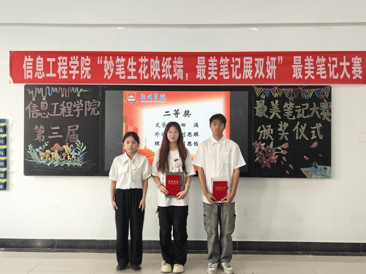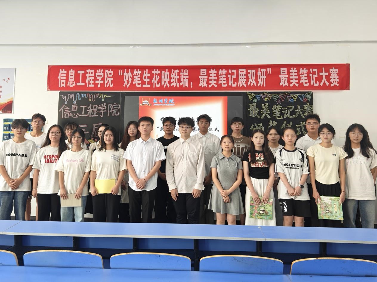 本网讯(通讯员 徐舒怡)为进一步营造浓厚的学习氛围,鼓励学生提升课堂学习效率,信息工程学院于6月12日晚在教学楼3404教室举办主题为“妙笔生花映纸端,最美笔记展双妍”的最美笔记大赛颁奖仪式。