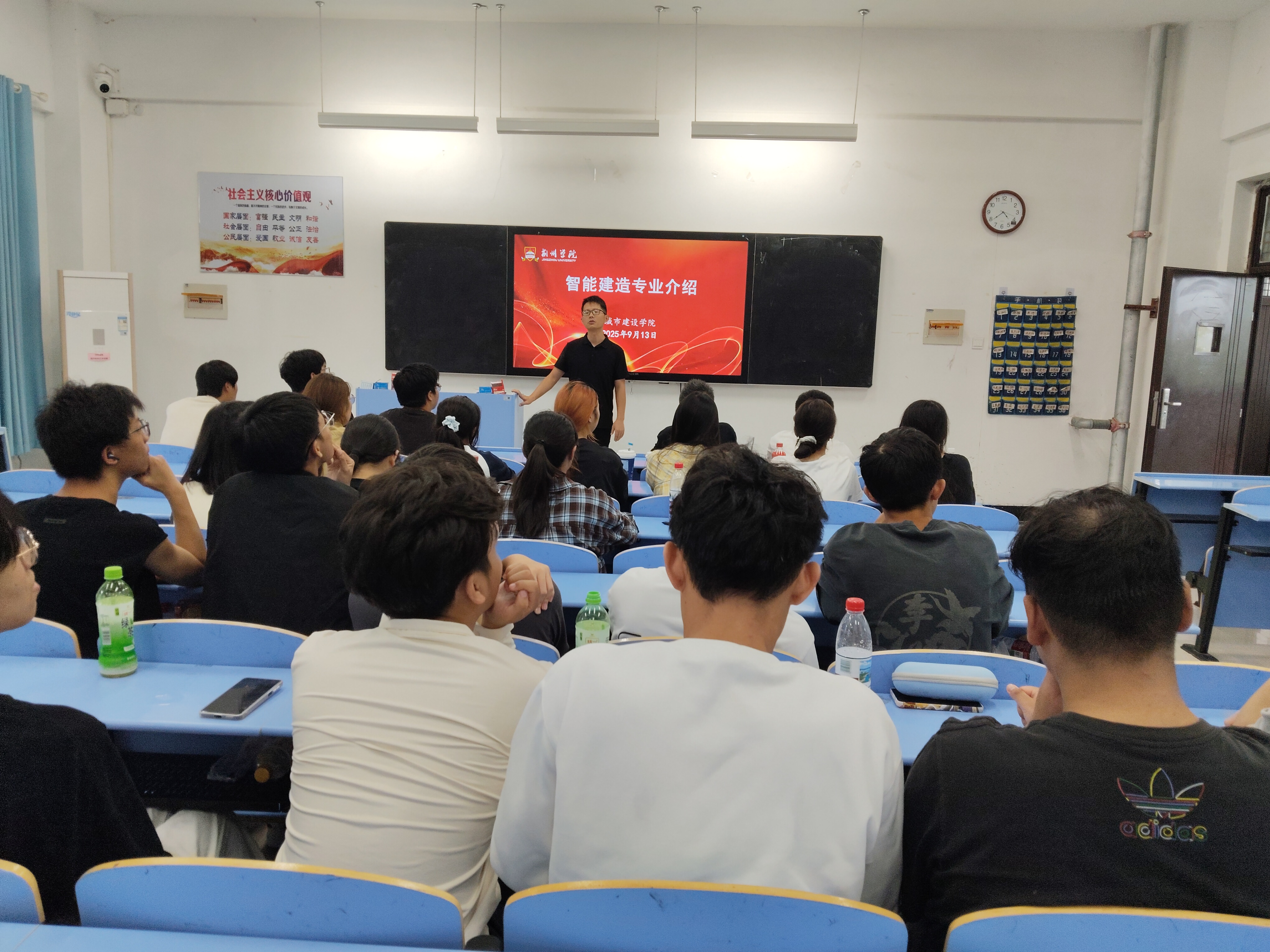 25级智能建造与建筑工程技术专业介绍会于9月15日下午2点在教学楼1301教室开展。城市建设学院院长贺才豪在专业介绍会现场致辞并介绍了学院发展情况及各专业特色。他重点阐述了新设立的智能建造专业在国家战略背景下的重要意义和发展前景,鼓励新生树立专业信心。随后,智能建造专业教研室主任周秦老师通过生动有趣地讲解,深入浅出地阐述了智能建造与建筑工程技术的核心内容和实际应用。他不仅介绍了专业课程的结构和特色,还强调了实训教学的重要性,鼓励新生们积极参与实践,提升专业技能。同时,针对新生们普遍关心的就业前景问题,周秦老师也进行了详细介绍,分享了行业内的最新动态和人才需求信息,让新生们对未来的职业发展充满了信心。新生们纷纷表示,将以此为契机,努力学习专业知识,积极参加实践活动,不断提升自己的综合素质和竞争力,为未来的职业发展打下坚实的基础。