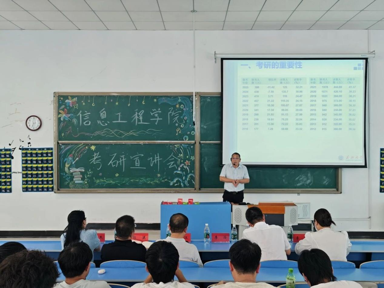 本网讯(通讯员 秦昕)为扎实推进2026届毕业生考研指导工作,信息工程学院坚持早谋划、早部署、早行动,近期精心组织开展了多场形式多样、内容丰富的考研宣讲与报名指导活动,全面助力学生科学规划复习路径、精准选择报考院校,营造了浓厚的考研氛围。