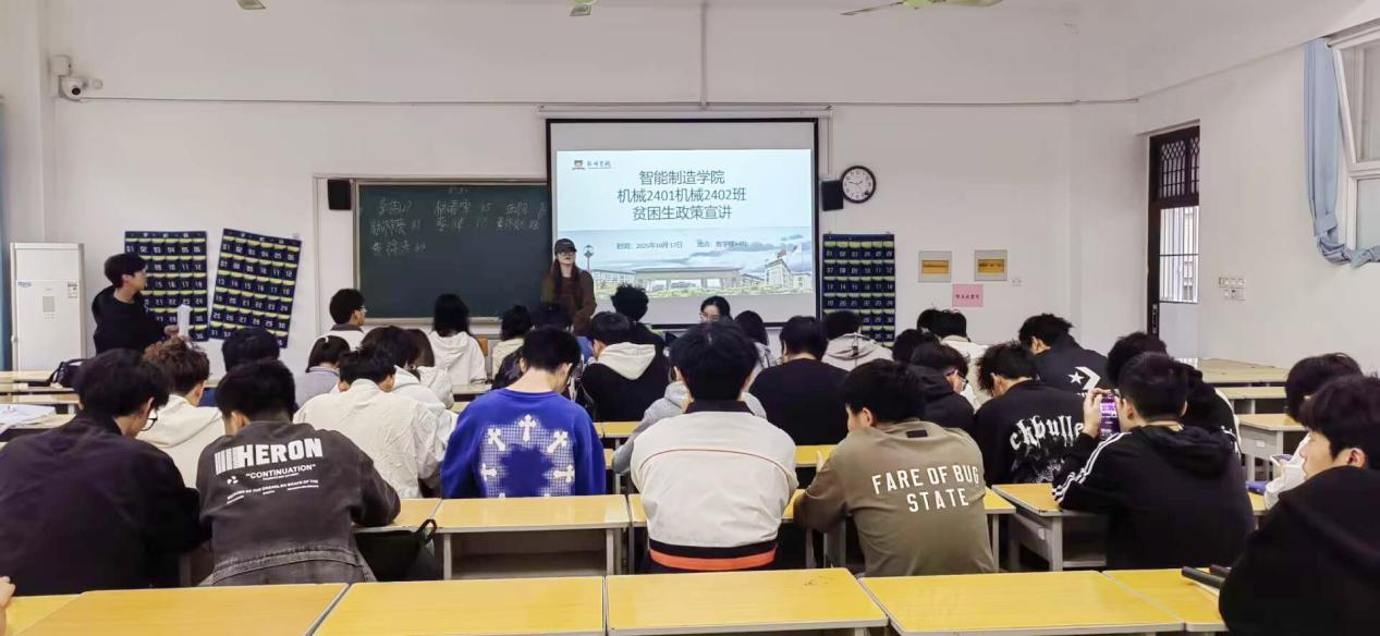 本网讯(通讯员 晏学渊)为确保国家资助政策精准落实,帮助家庭经济困难学生顺利完成学业,10月14日-16日,智能制造学院2025-2026学年贫困生认定工作正式启动。学院高度重视此项工作,积极部署,全面组织各班级召开贫困生认定工作政策宣讲班会,旨在让每一位学生深入了解政策,确保认定过程的公平、公正、公开。