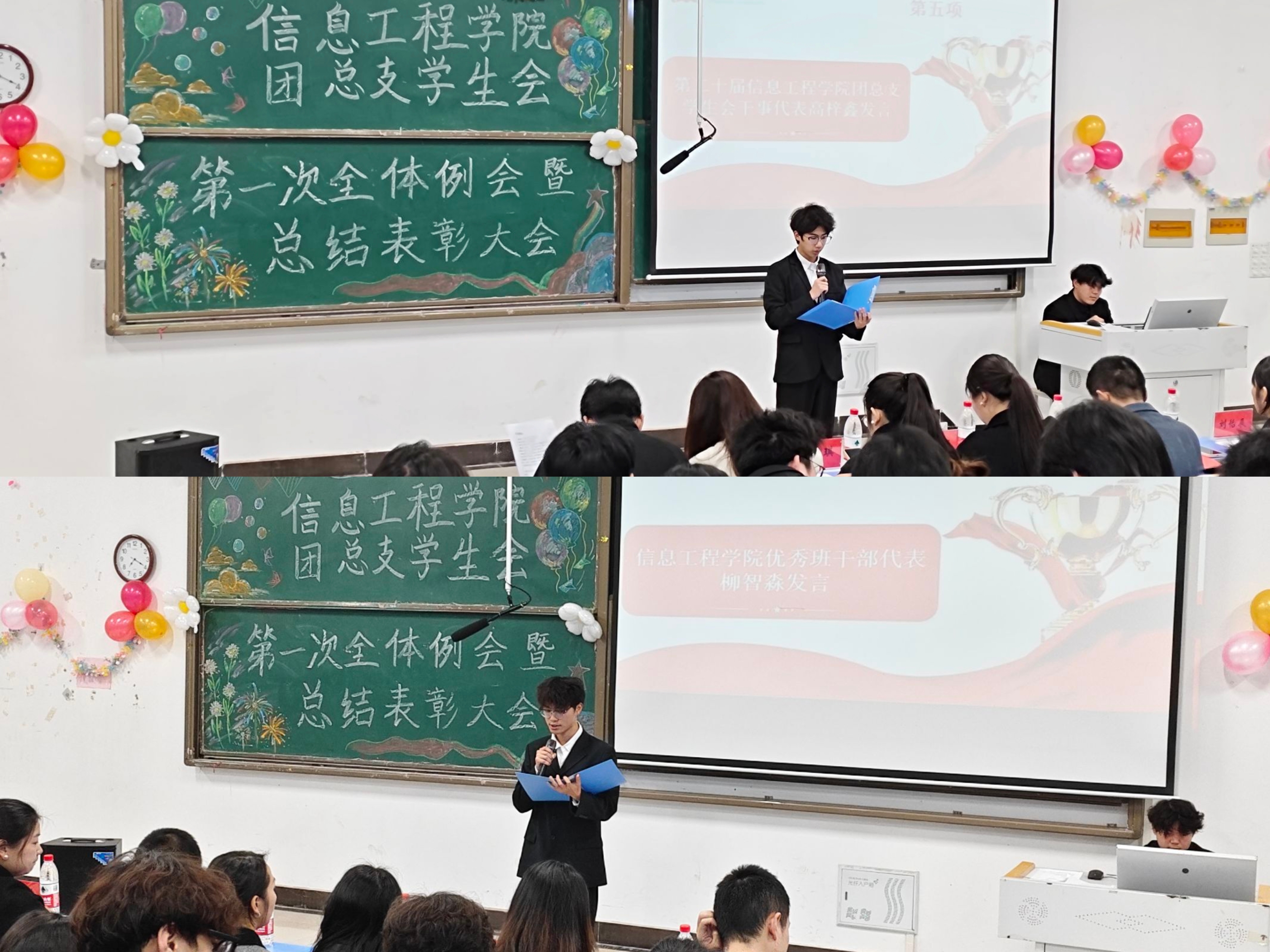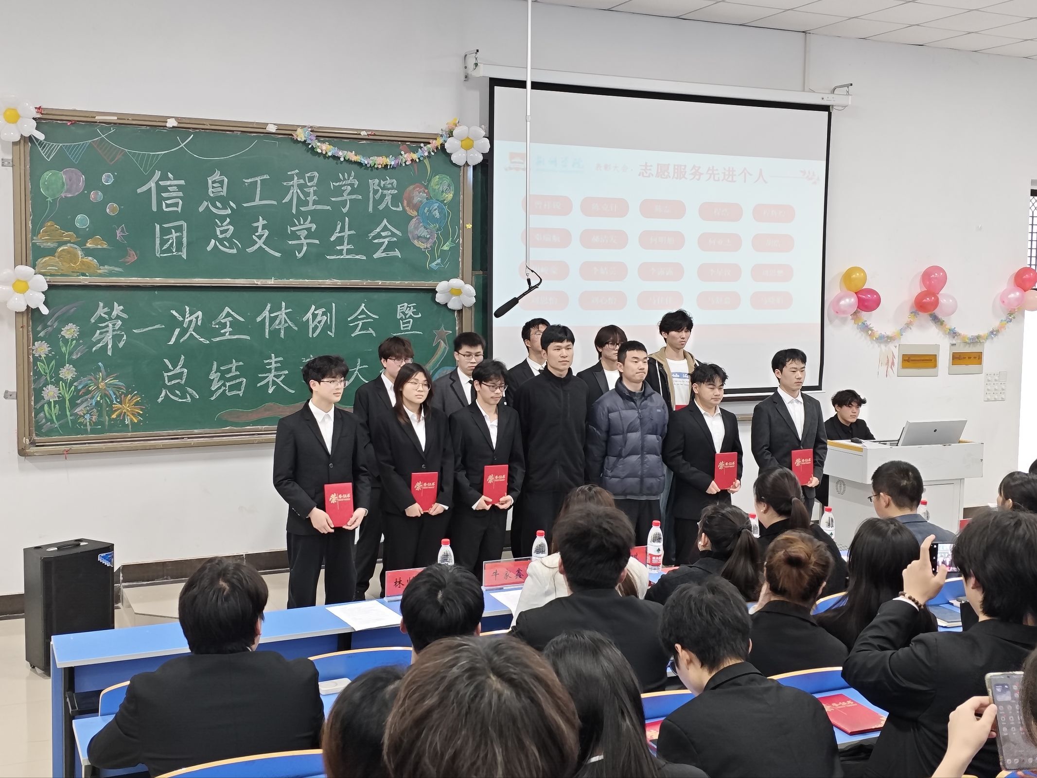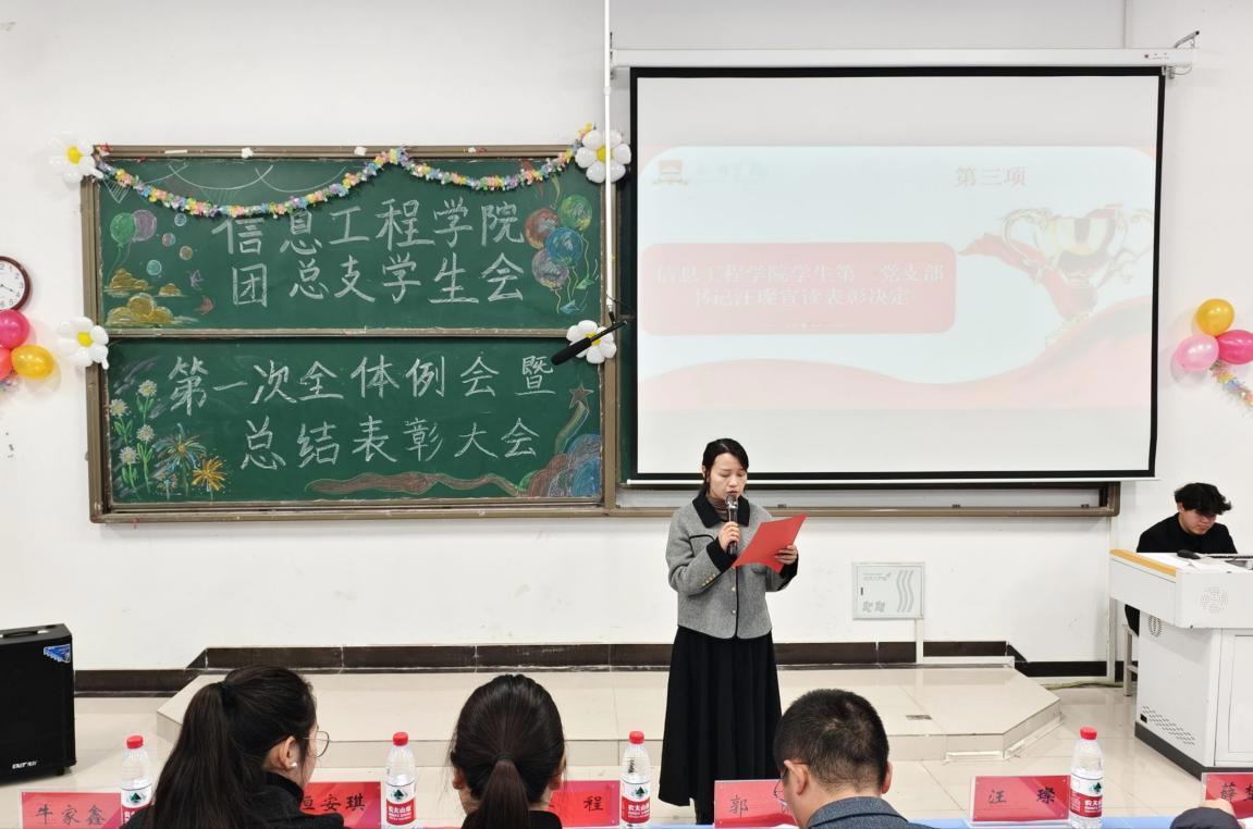 本网讯(通讯员 马晓娟)为总结过往工作、表彰先进典型,凝聚团学工作合力,明确新学期工作方向,2026年3月26日,信息工程学院团总支学生会第一次全体例会暨总结表彰大会在教学楼3205教室圆满举行。