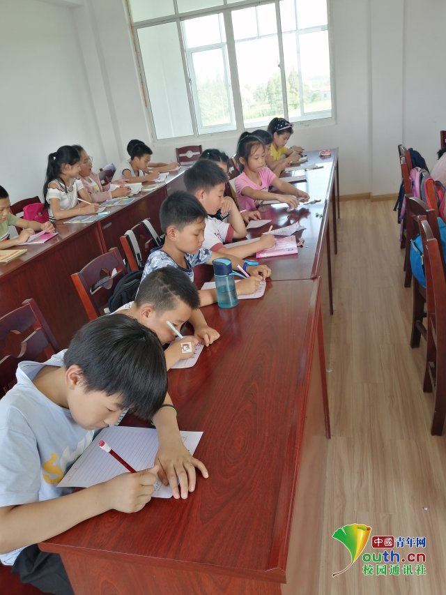 图为孩子们认认真真给家长写信的场景。中国青年网通讯员 盛伟 摄