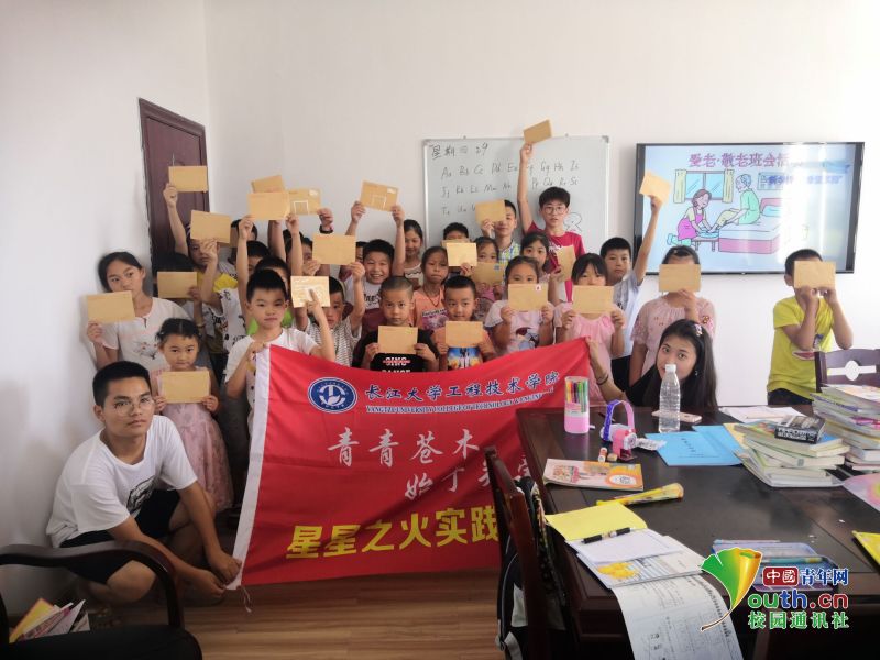 中国青年网荆州8月26日电(通讯员 盛伟 卢盼)长江大学工程技术学院星星之火实践团队暑期为贯彻十九大,响应“青春心向党,建功新时代”的号召,于7月22日来到荆州市荆州区弥市镇新华桥村进行为期一个月的“希望家园”支教活动。团队里的每个队员都抱着“用一个月不长的时间,做一件终身难忘的事”的心态,积极奉献着自己的活力,为留守儿童打造一片属于自己的天空,度过一个平凡而又意义非凡的暑期。