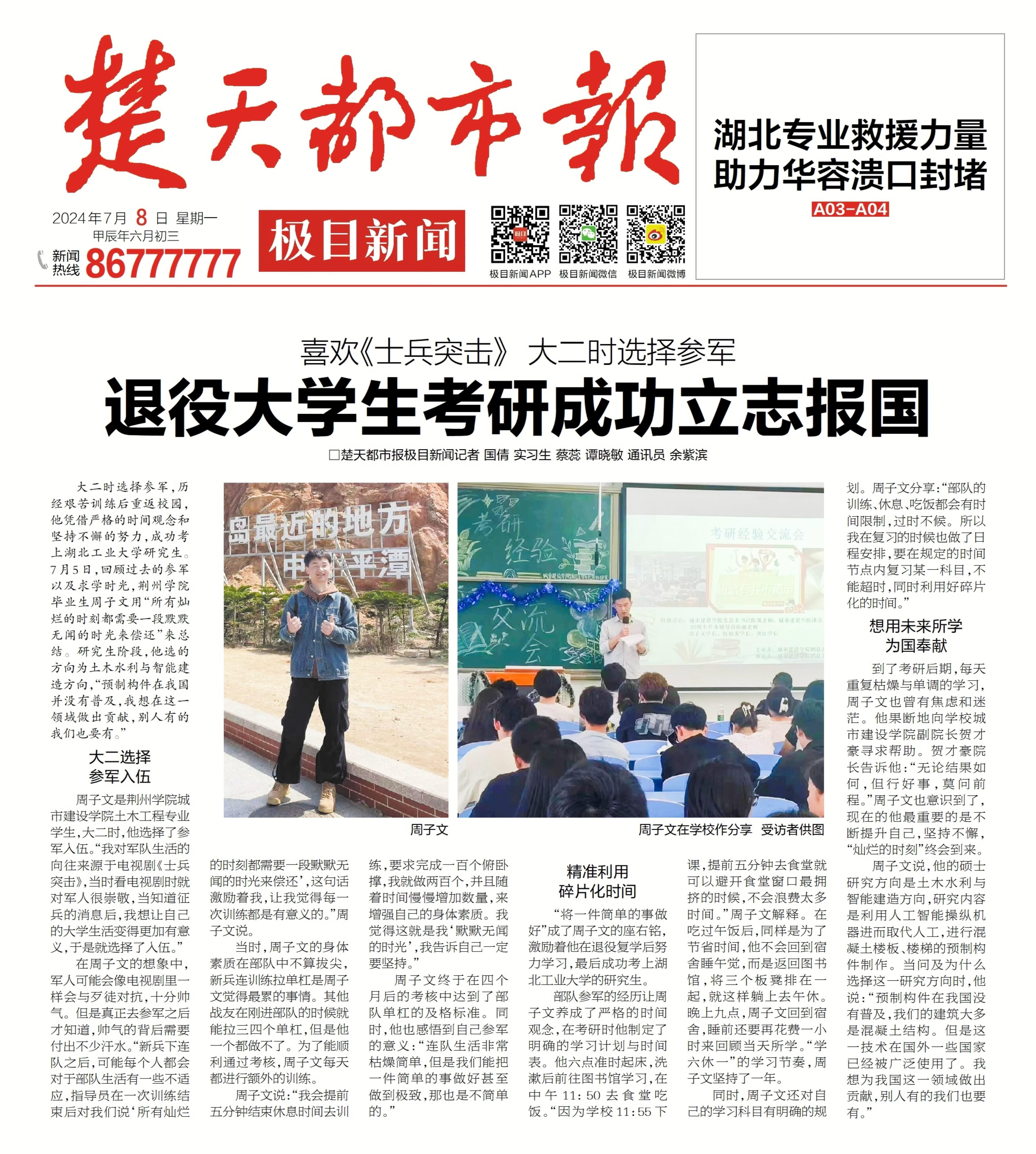 综合要闻 缤纷校园 教学科研 媒体荆院 通知公告 学术动态 【楚天都市报】退役大学生考研成功立志报国 来源:党委宣传部 编审:党委宣传部 审核:党委宣传部 签审:党委宣传部 日期:2024-07-08 上一篇: 【极目新闻】退役大学生考研成功立志报国 下一篇: 【极目新闻】从军经历养成严格时间观念,助他考上研究生,“上岸”后他立志科研报国 返回列表页 最新文章 【江汉风】产教融合 智控未来——WilliamHill中文官方网站、晨龙... 【荆州高新区发布】政校企三方携手 共同推进... 【湖北日报】WilliamHill中文官方网站调研公安县重点企业 校... 【湖北日报客户端】产教融合 智控未来——荆州... 【中华网】产教融合 智控未来——WilliamHill中文官方网站、晨龙... 【湖北日报】WilliamHill中文官方网站教师寒假期间到企业一线...