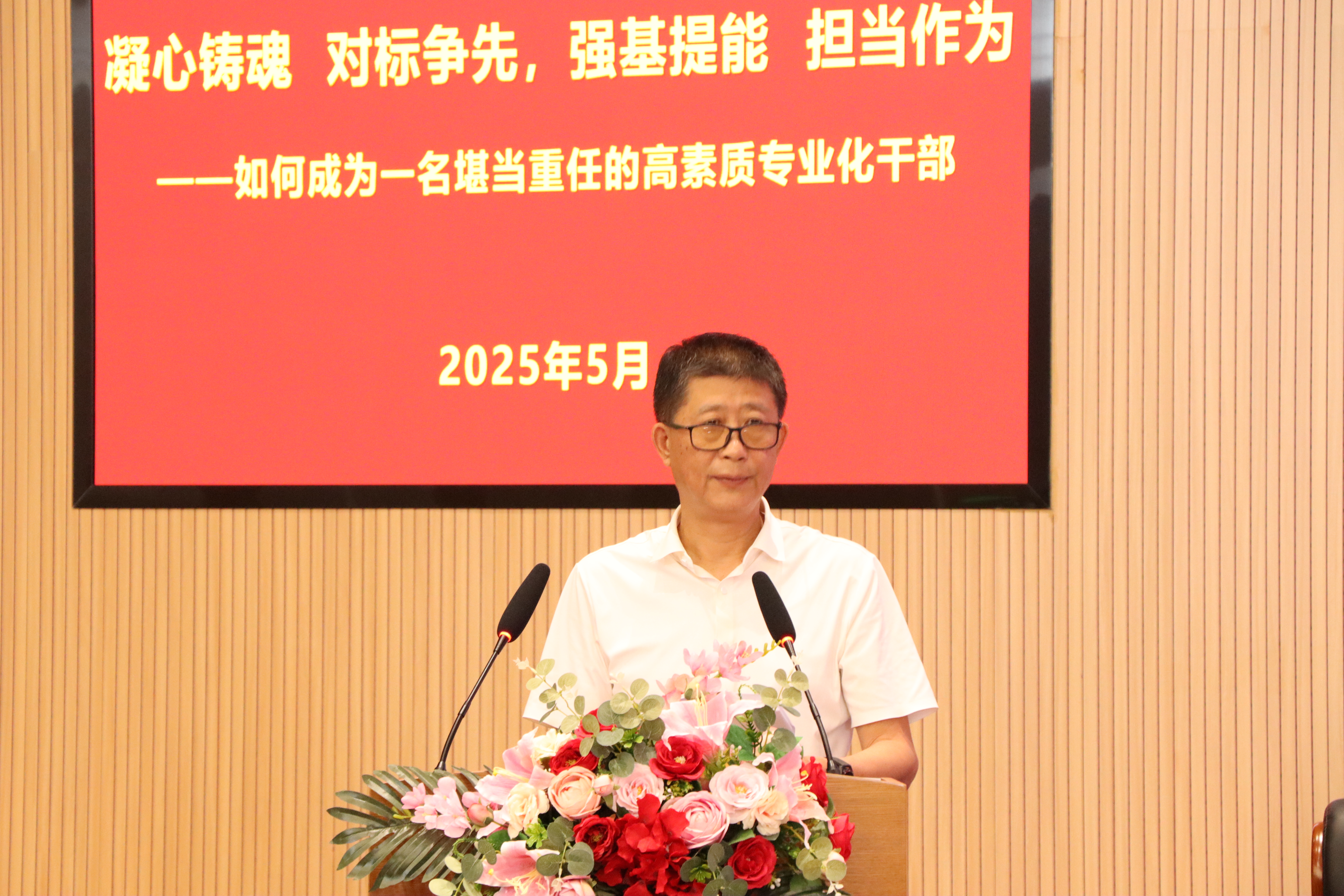 副校长聂好春教授以《凝心铸魂 对标争先,强基提能 担当作为——如何成为一名堪当重任的高素质专业化干部》为题作专题讲座。从六个方面阐述如何成为一名堪当重任的高素质专业化干部:一是学校高度重视干部培训工作。毛泽东曾提出:“政治路线确定之后,干部就是决定的因素。”强调了干部的重要作用,而中层干部是高层决策的执行者和基层工作的组织者,处于承上启下、执行者、中坚力量、参谋助手的重要位置。二是支点建设需要一支堪当重任的高素质专业化干部队伍。习近平在湖北考察时强调:要鼓足干劲、奋发进取、久久为功、善作善成,在长江经济带高质量发展中奋勇争先,加快建成中部地区崛起的重要战略支点,奋力谱写中国式现代化湖北篇章。湖北启动“干部素质提升年”并实施六大行动:凝心铸魂行动、对标争先行动、强基提能行动、破解“乱作为、不作为、不敢为、不善为”问题专项行动、弘扬“四下基层”优良传统行为、“清廉湖北”建设行动。荆州市委书记汪元程提出以更高定位更高标准更高要求加强干部队伍建设,为荆州打造全省支点建设先行区提供保障。三是以更高定位、更高标准、更高要求加强干部队伍建设。党员干部一定要加强理论学习、厚实理论功底,弘扬教育家精神和春来教育集团“三吃六心”精神(吃苦、吃亏、吃气;良心、决心、恒心、信心、感恩心、平常心),以荆楚文化“筚路蓝缕、以启山林”的开拓进取精神作为前行的动力。四是提高履职能力,努力提高干部尤其是年轻干部必备的“八种本领”和“七种能力”。要提升干部的领导力,不单是管人的能力而是影响人的能力,不单是激励下属的说教能力,更包括感化下属的身教魅力,不是仅仅靠自己行动,而是号召大家一起行动。要提升干部的执行力,加强团队建设,把握好正副职的“为”与“不为”。五是以荆州名人张居正和关羽为例,学习其优点,吸取其教训。张居正勇于任事、实干担当,“工于谋国,拙于谋身”“宁有瑕而为玉,毋似玉而为石,愿以深心奉尘刹,不予自身求利益”的精神值得学习,关羽因骄而败也给年轻干部带来了沉思。六是加强干部修养的五个必修维度。认清责任、知重而行,全面练就“铁肩膀”的责任担当;胸怀大局、把准方向,着力建设“响当当”的领导班子;倾心倾力、严管善用,着力锻造“硬邦邦”的干部队伍;昂扬斗志、思进图强,全力提振“嗷嗷叫”的精神状态;务实重行、紧抓快干,努力锤炼“拼抢实”的工作作风。