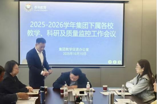 本网讯 为深入贯彻集团2025年暑期工作会议精神,高效推进新学年目标任务落地落实,2025-2026学年教学、科研及教促工作会议于10月10日上午在集团第一会议室召开。集团教学促进办公室全体人员、集团各校主管教学副校长、集团各校教学促进办公室主任参加会议。我校副校长聂好春和教促办副主任周运增参加了此次会议。