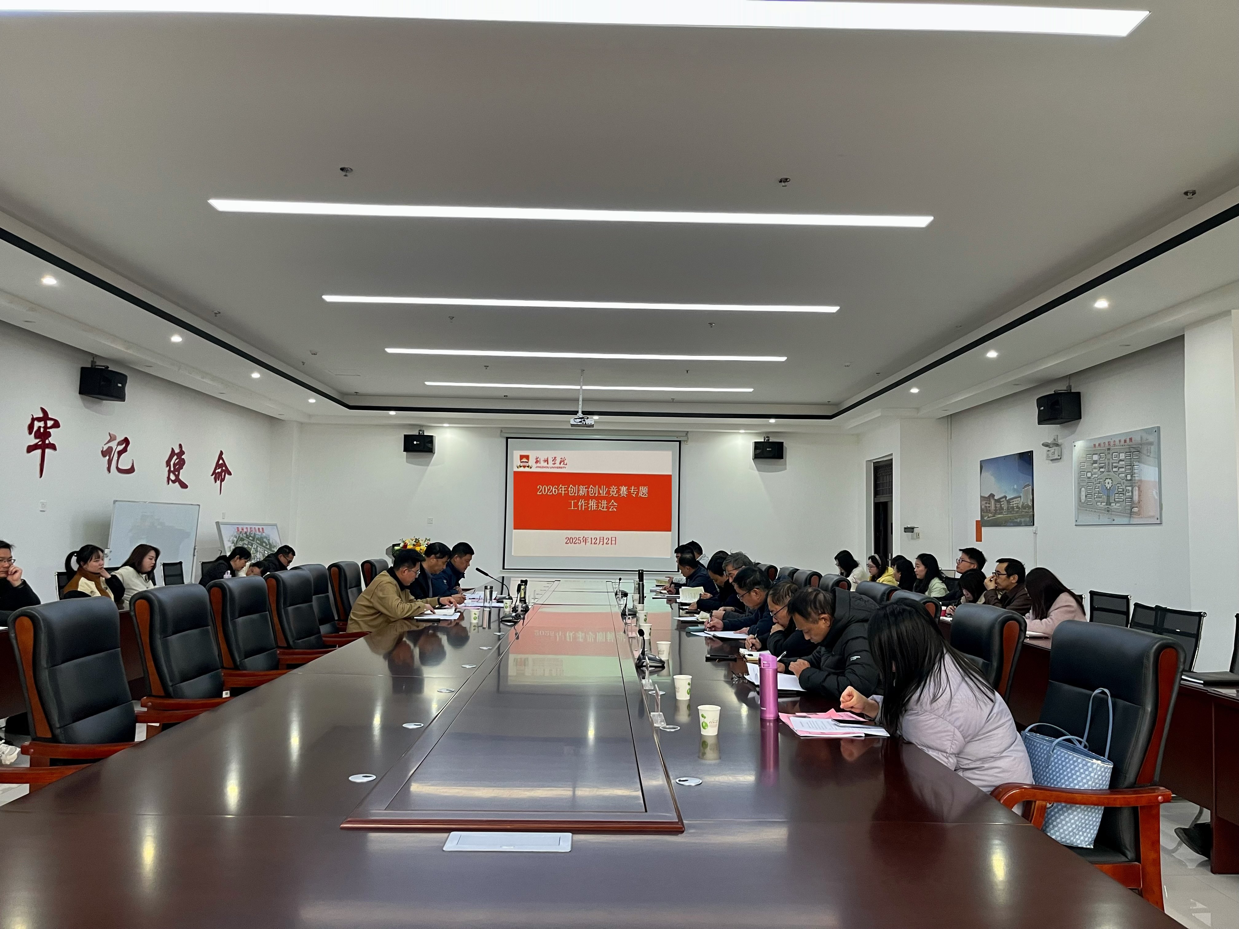 本网讯(通讯员 孙龙)为深入落实“创响荆楚,赛赢未来”创新创业竞赛专题培训精神,系统推进我校2026年创新创业竞赛准备工作,切实提升项目质量与核心竞争力,12月2日下午,我校在图书馆301会议室召开2026年创新创业竞赛专题工作推进会。各二级学院院长、教学副院长、教研室主任、教学秘书等参加会议。会议由大学生创新创业中心负责人孙龙主持,校党委委员、纪委书记、副校长聂好春教授出席。
