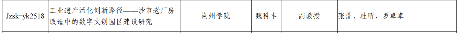 魏科丰老师主持的课题《工业遗产活化创新路径——沙市老厂房改造中的数字文创园区建设》在总结沙市老厂房发展现状的基础上,以沙市老厂房为样本,聚焦长江中游工业文化特色(如近代轻工业遗产),通过数字孪生、元宇宙场景等技术手段,实现地方文化资源的创造性转化。构建“工业遗产活化+数字文创”理论框架,突破传统“物理空间改造”的单一视角,从数字技术赋能、文化IP开发、产业生态重构三个维度,探索工业遗产活化的创新路径。融合建筑遗产保护、数字人文、文化产业经济学等多学科理论,提出“技术工具-文化内容-运营模式”三位一体的分析模型,填补现有研究的碎片化空白。