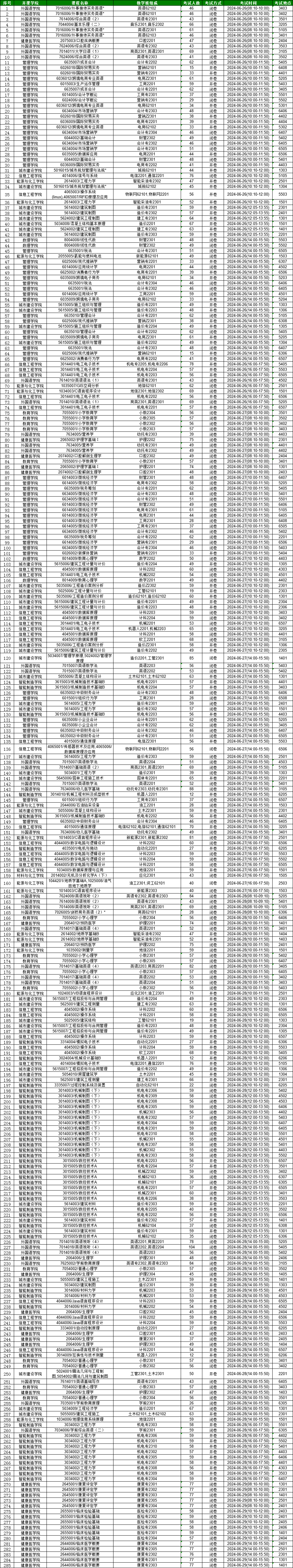 2023-2024学年第二学期期末考试安排(第17、18周)