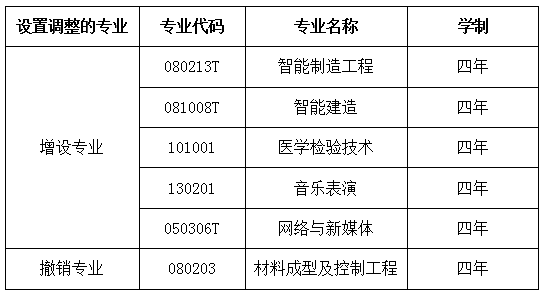经二级学院申报、学校组织评审,学校拟向教育部申请新增5个本科新专业,撤销1个本科专业,现将相关情况予以公示。