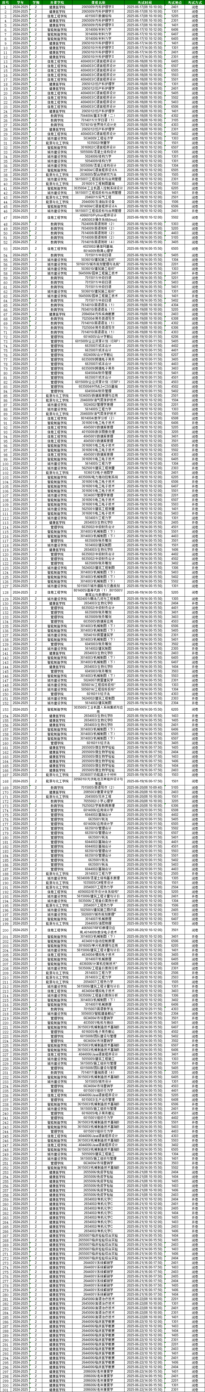 2024-2025学年第二学期期末考试安排(第17周)