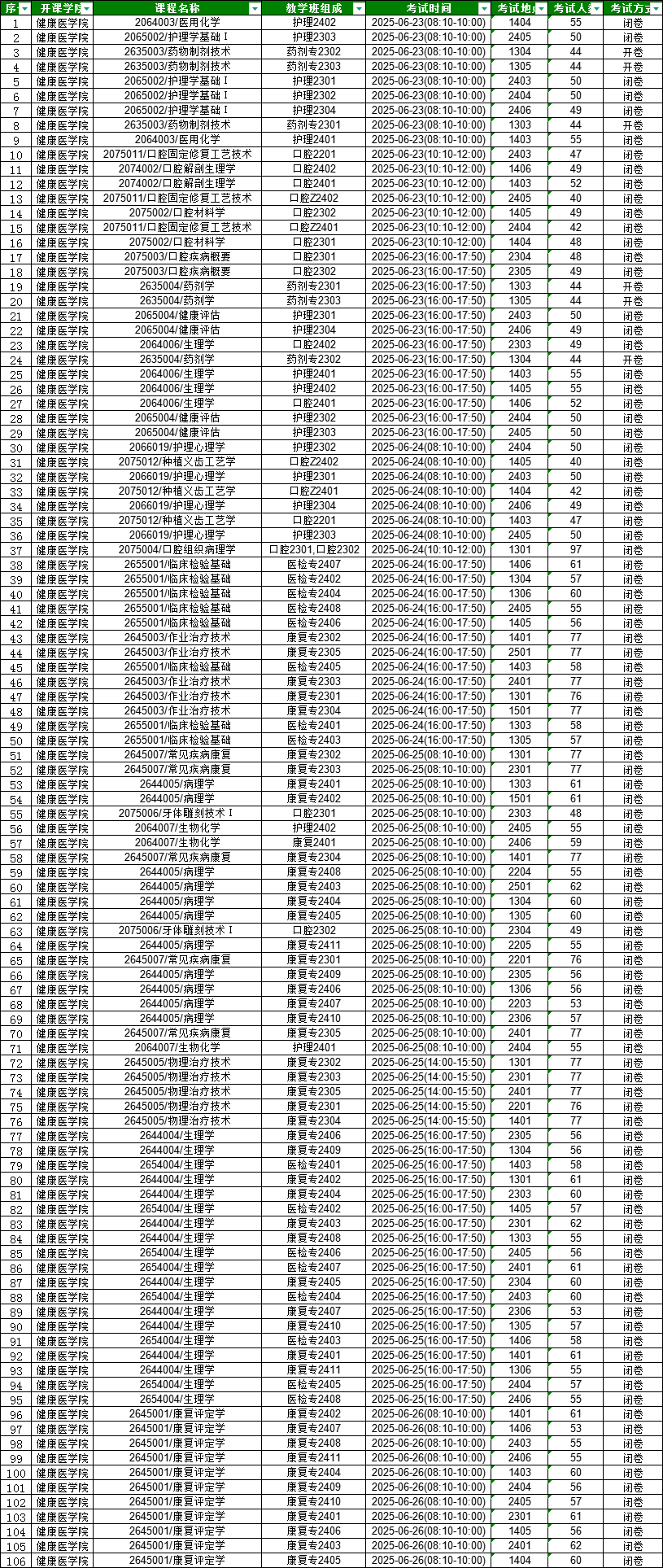 2024-2025学年第二学期期末考试安排(第18周)(二)