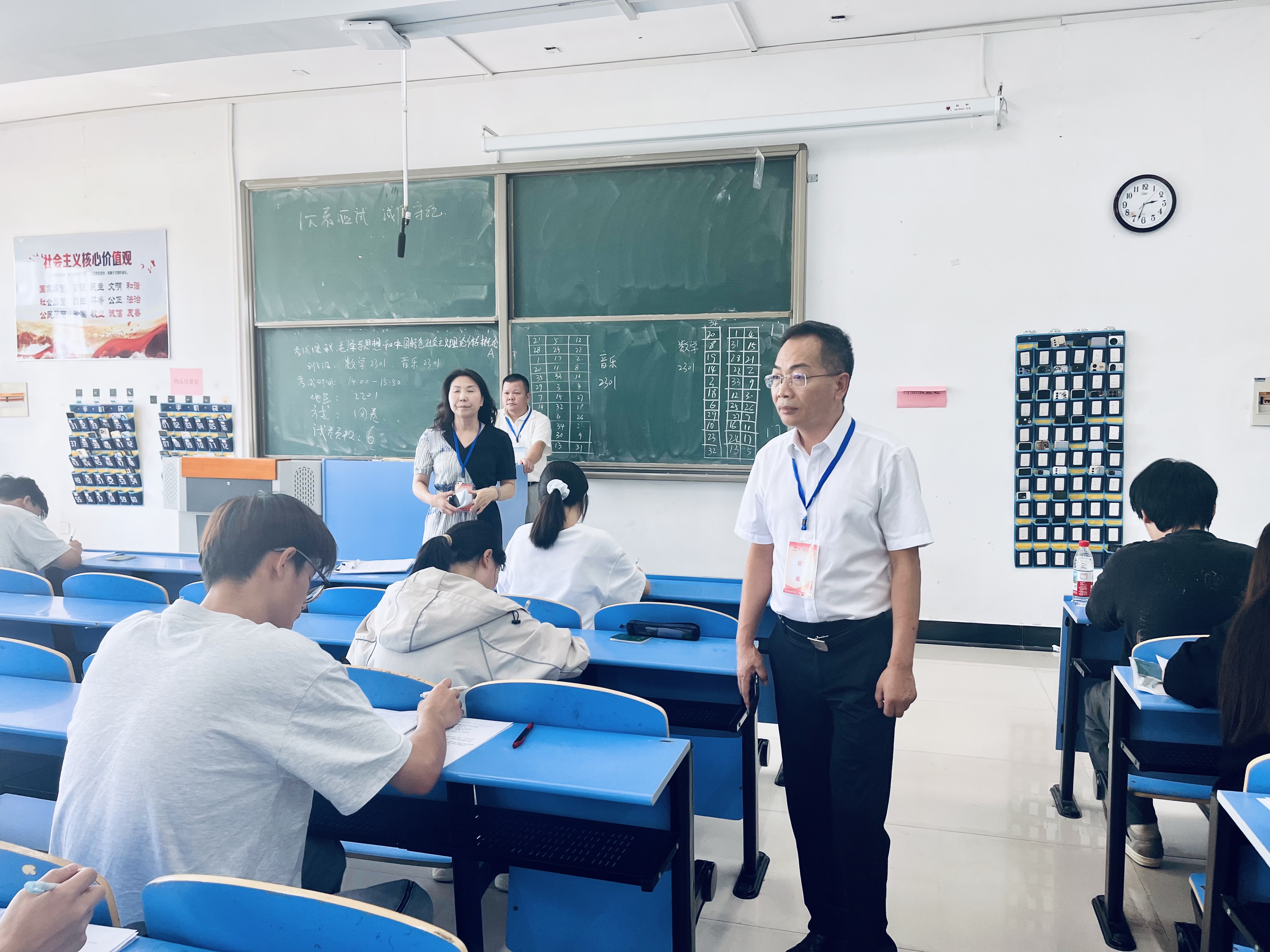 为进一步加强考风考纪建设,严肃考试纪律,确保期末考试工作规范有序进行,6月24日下午,校长戴国强、副校长聂好春、刘瑾带领教务处、教促办负责人组成巡考组,对全校期末考试考场进行了全面巡查。