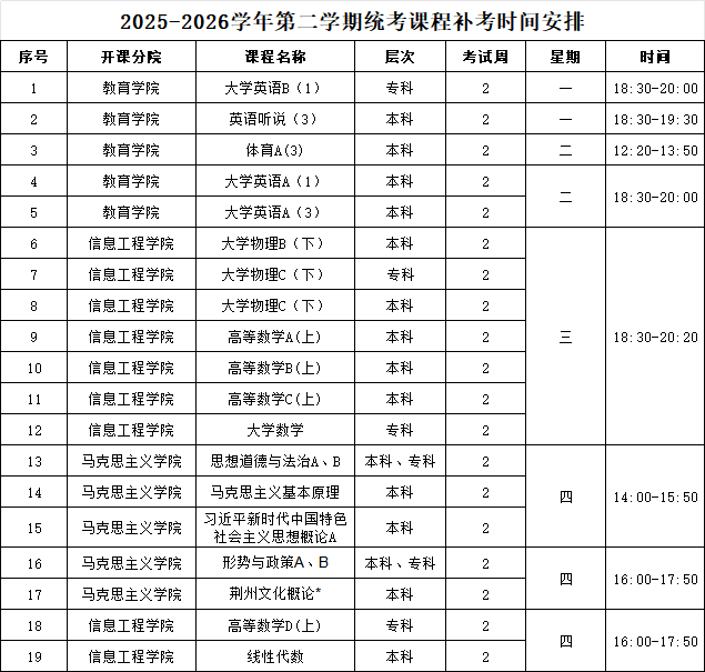 关于做好2025-2026学年第二学期课程补考工作的通知