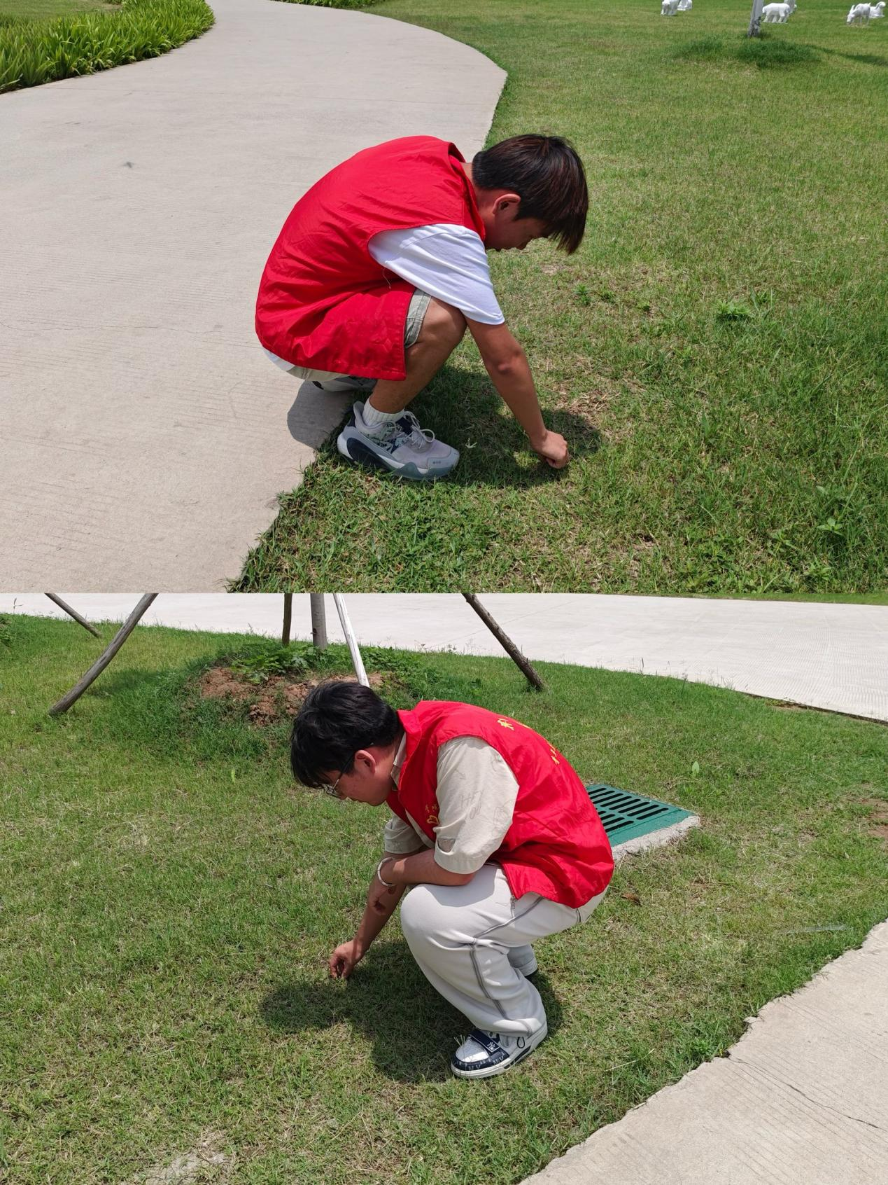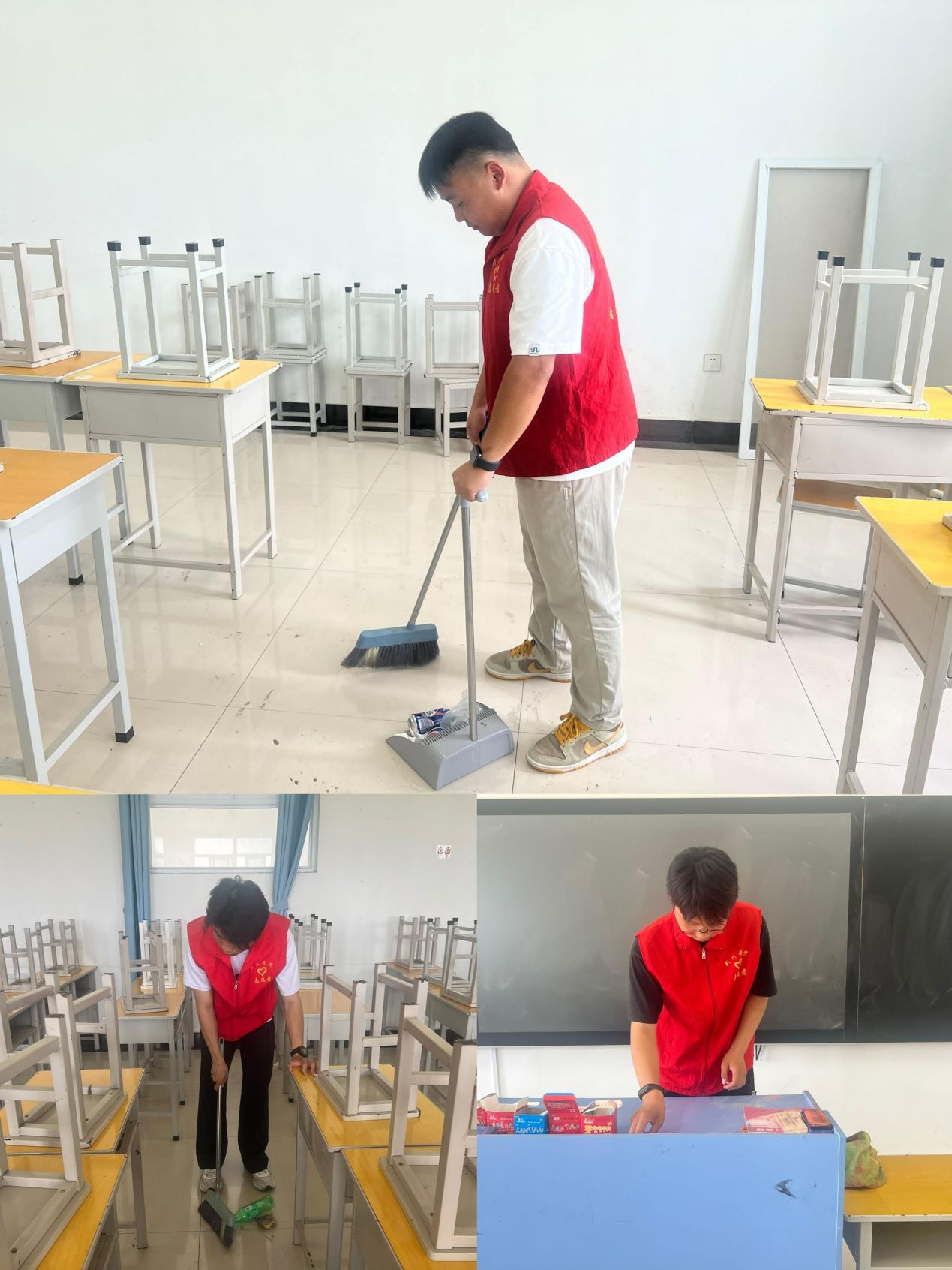 活动当天,志愿者们身着统一标识马甲,分成教室清洁、草坪维护、垃圾分类等多个小组,有序投入劳动。在教室内,同学们细致擦拭桌椅、清理黑板槽粉尘、整理讲台设备,并对门窗、墙角等卫生死角进行深度清扫;草坪区域,志愿者手持工具捡拾枯枝落叶、清除杂草杂物,同时向过往师生宣传环保理念,呼吁共同维护绿色校园。